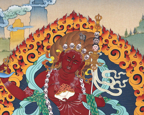 One of our most popular thangkas is the Dakini thangkas that depict not only the more popular dakinis, such as KuruKulla, Machig Labdron, Mandarava, Vajravarahi, Vajrayogini, and Yeshe Tsogyal but also the less popular ones like Troma Nagmo and Tsundri (Cundi). They have gained their popularity through their esoteric appearance and unique forms.