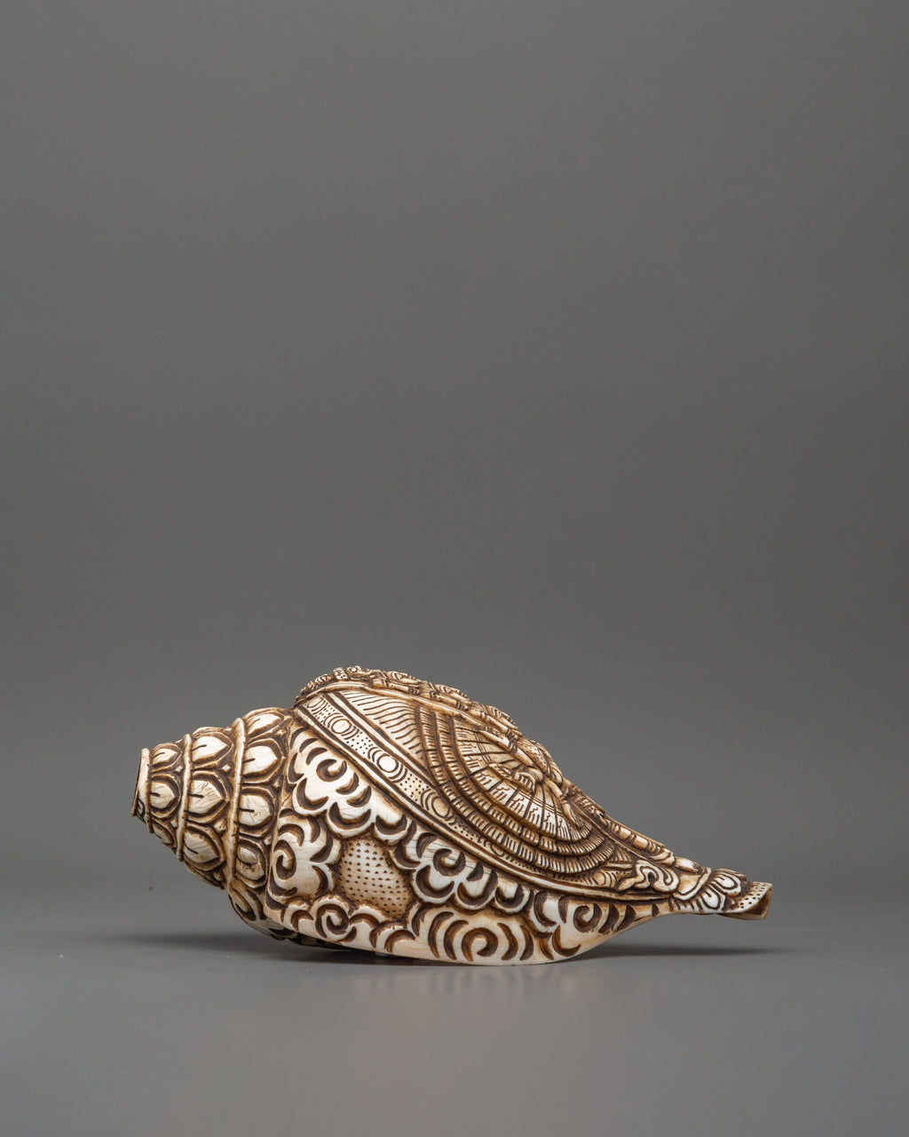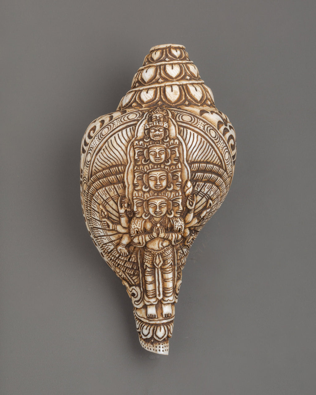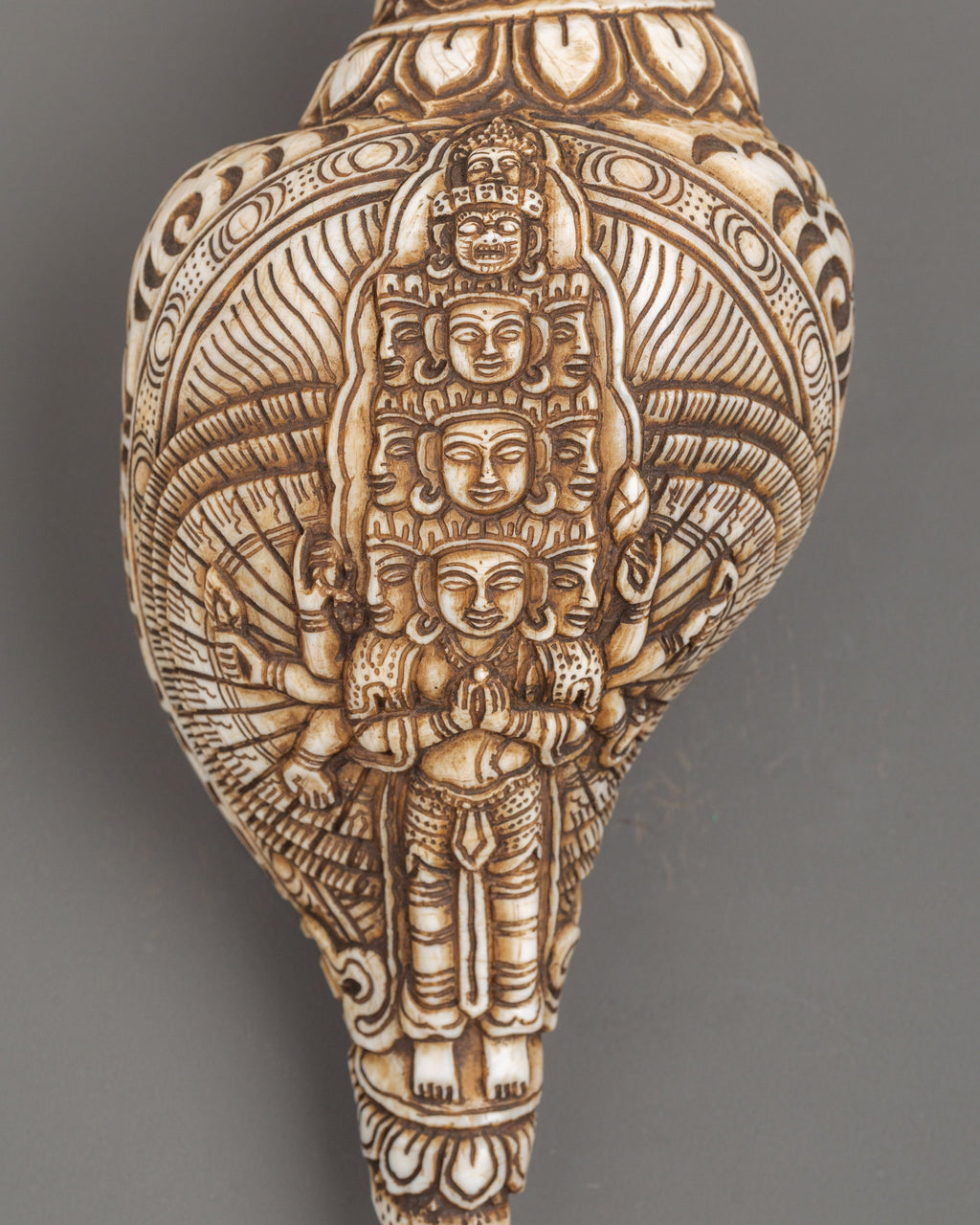 1000 Armed Chenrezig Carved Conch | Tibetan Spiritual Healing and Meditation Tool