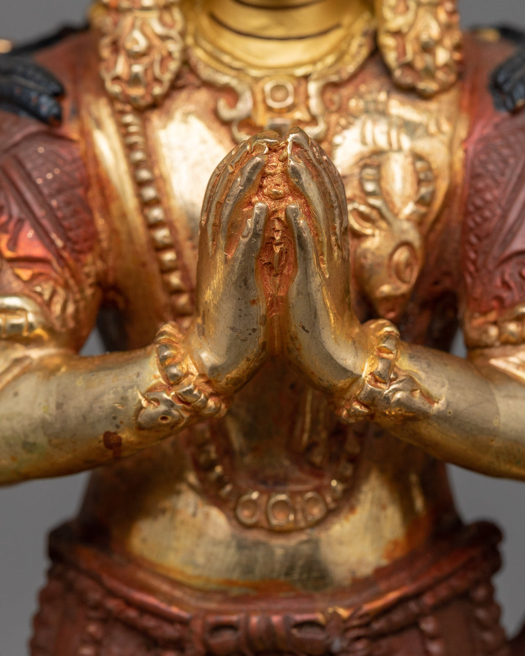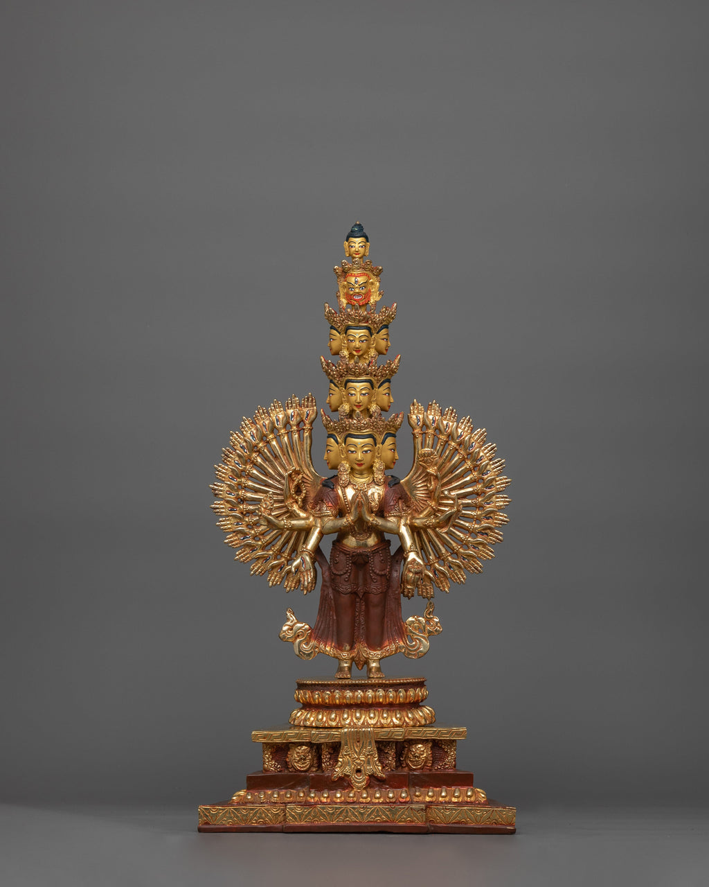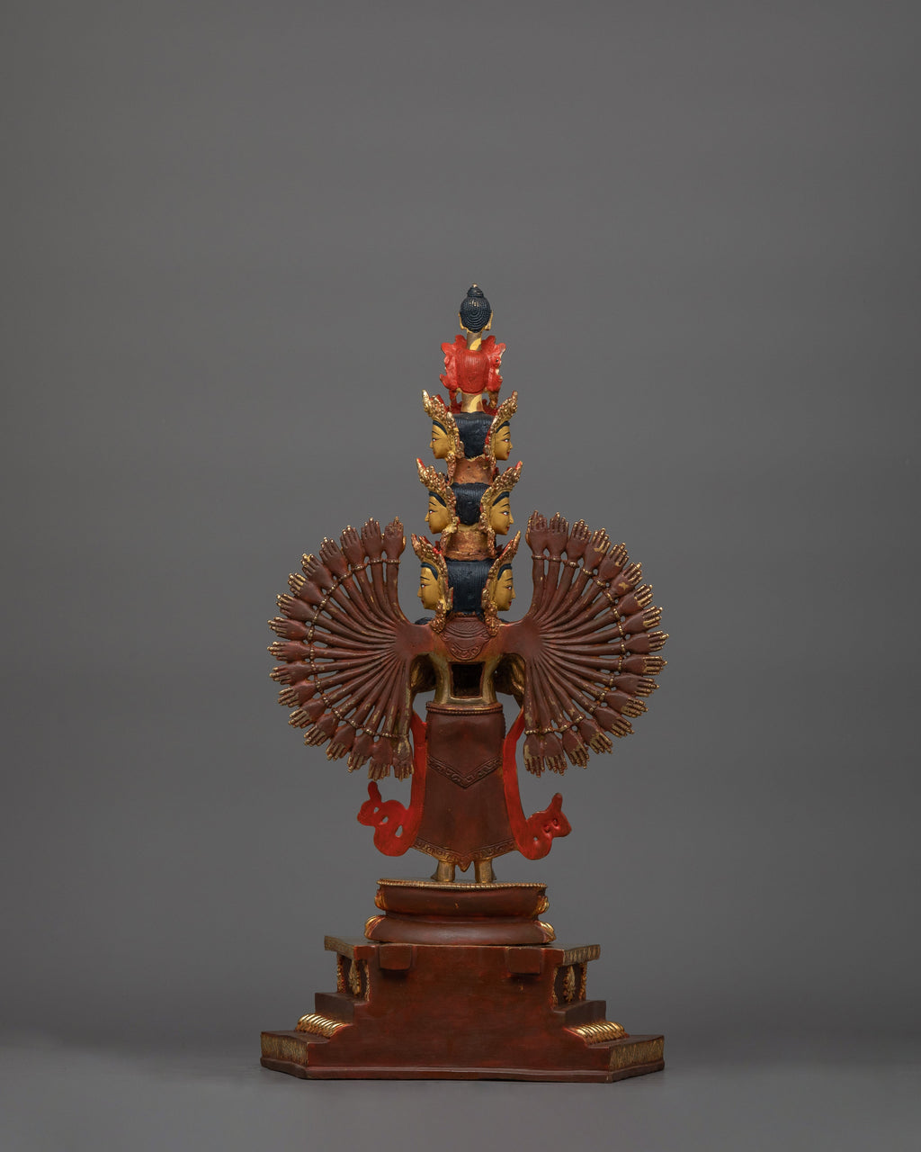 Chenrezig, known as the Bodhisattva of Compassion in the Buddhist pantheon, comes here with a thousand arms, indicating his unwavering dedication to assisting all beings. This manifestation promises to bring a brilliant beacon of compassion, benevolence, and spiritual awakening into your home, guiding the occupants toward enlightenment and harmony. Owning this statue is like keeping a piece of heavenly energy with you all the time, inspiring love, empathy, and kindness.