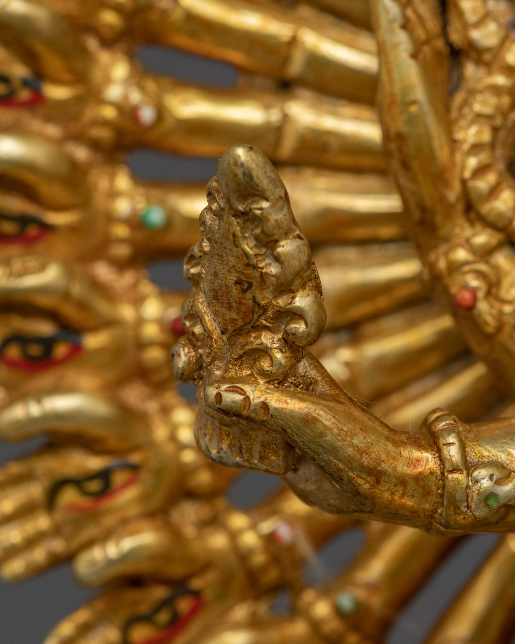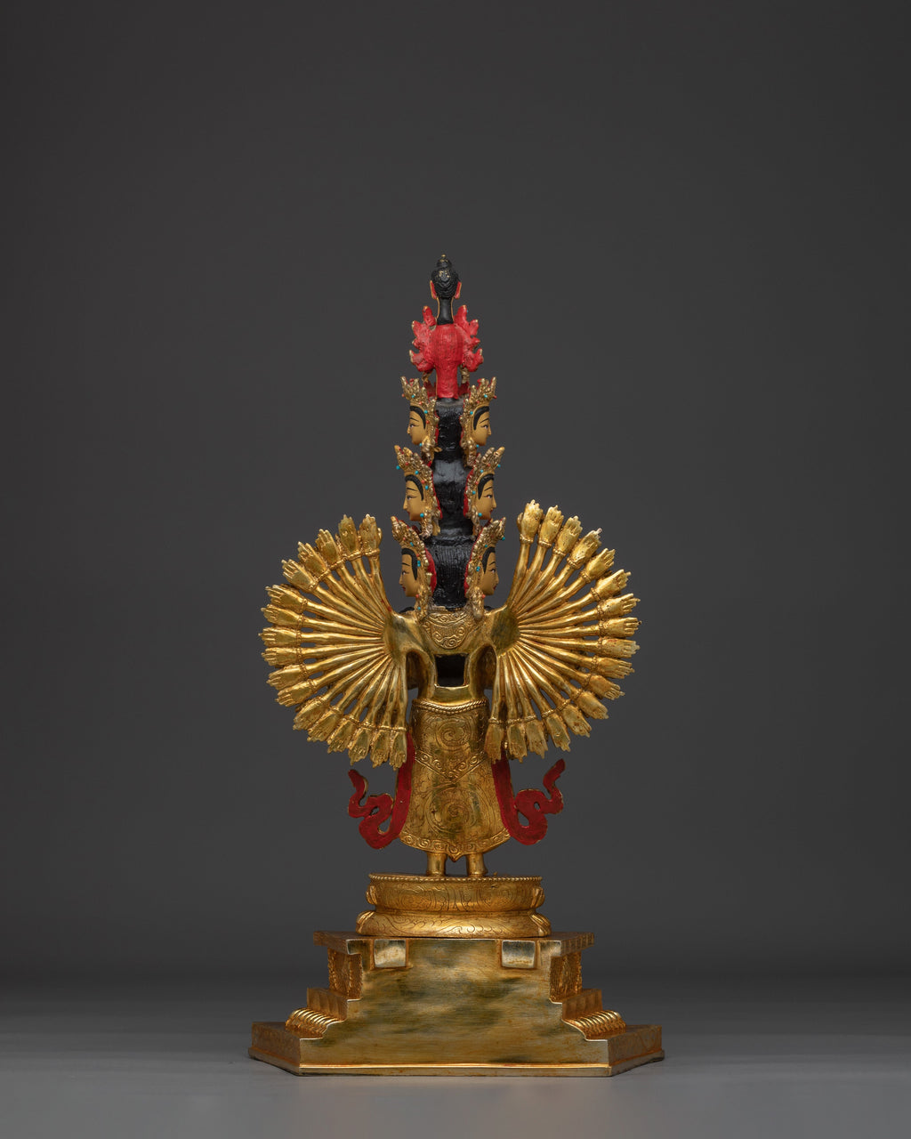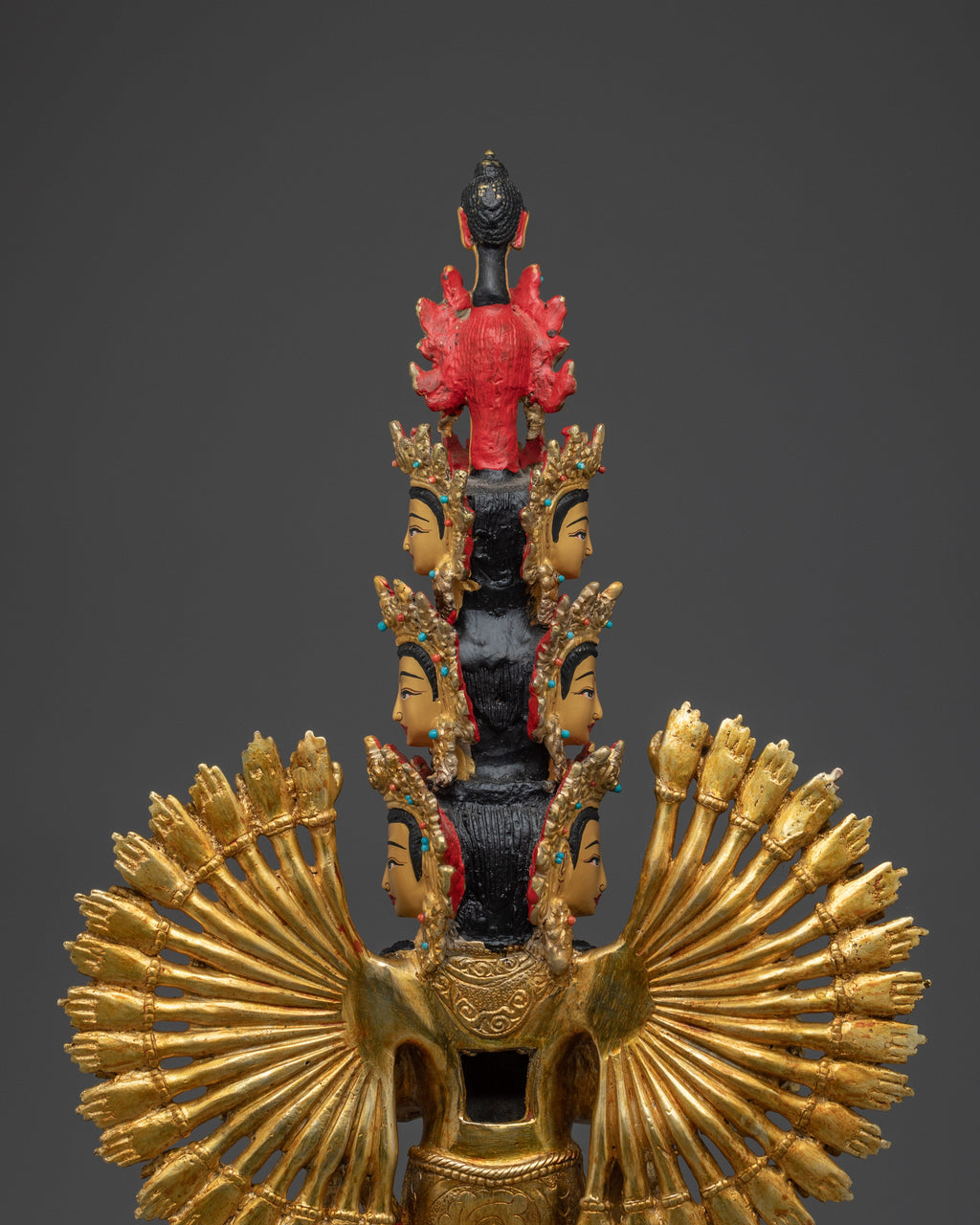 1000 Armed Chenrezig Gold and Copper Statue | Meditation Decor with Acrylic Details