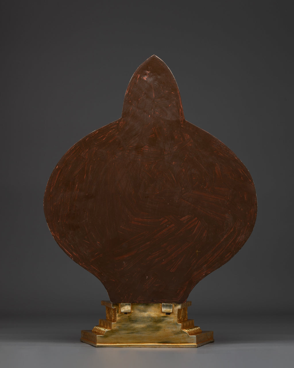Hand-painted with stunning gold and acrylic highlights, the elaborate crown, robes, and exquisite jewelry enhance this extraordinary piece's divine presence. In the middle, Chenrezig's serene visage exudes knowledge and tranquility, encouraging meditation and reflection. His unending compassion and dedication to providing assistance and blessings are vividly depicted by his thousand arms, each of which holds a variety of tools.