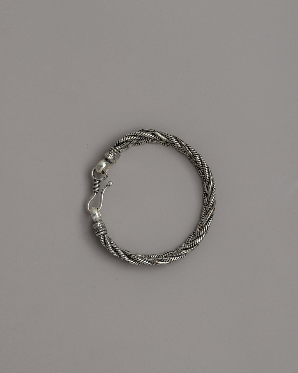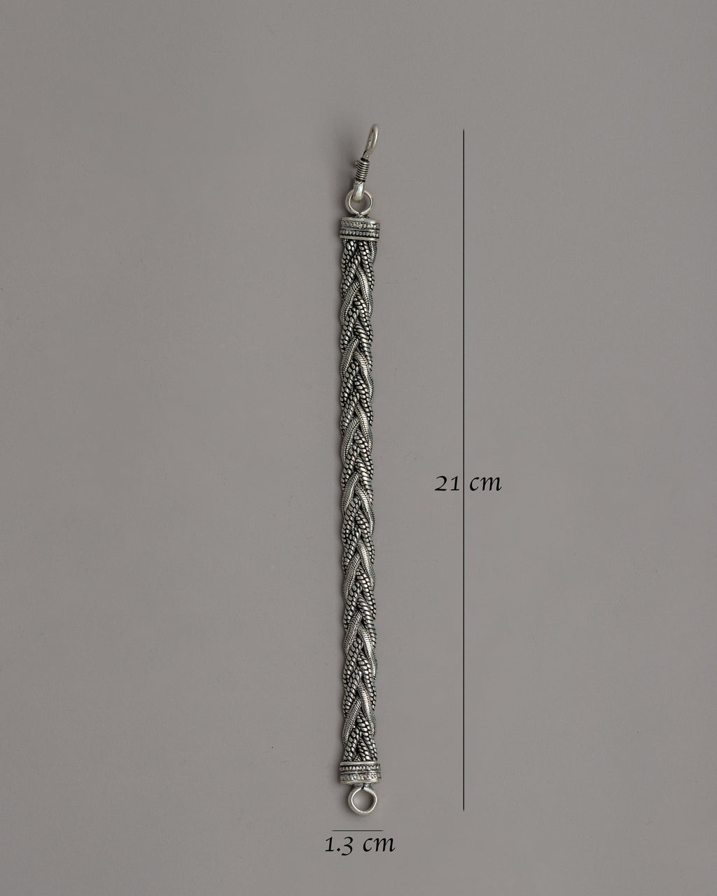 The bracelet's elaborate braided design demonstrates the beauty of professional crafting, creating a visually appealing texture that adds to its ethnic and vintage charm. The braided design represents strength and togetherness, while the intricate endcaps and loop closing provide an air of refinement. Whether worn alone as a statement piece or with other accessories, this 21-cm White Metal Bracelet is a must-have for individuals who value traditional and artisanal jewelry.