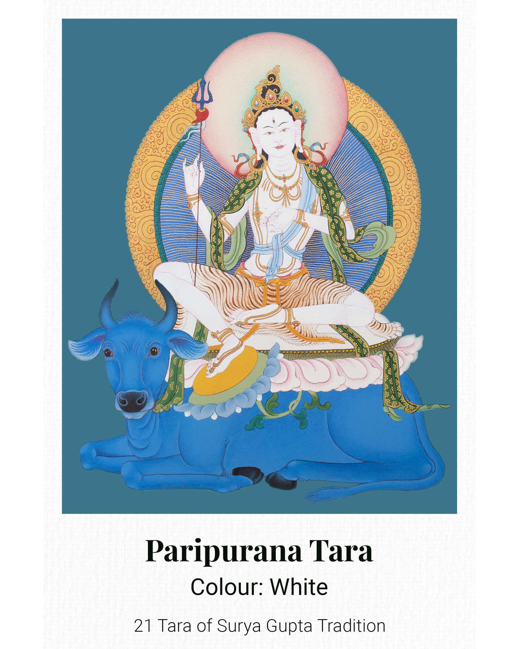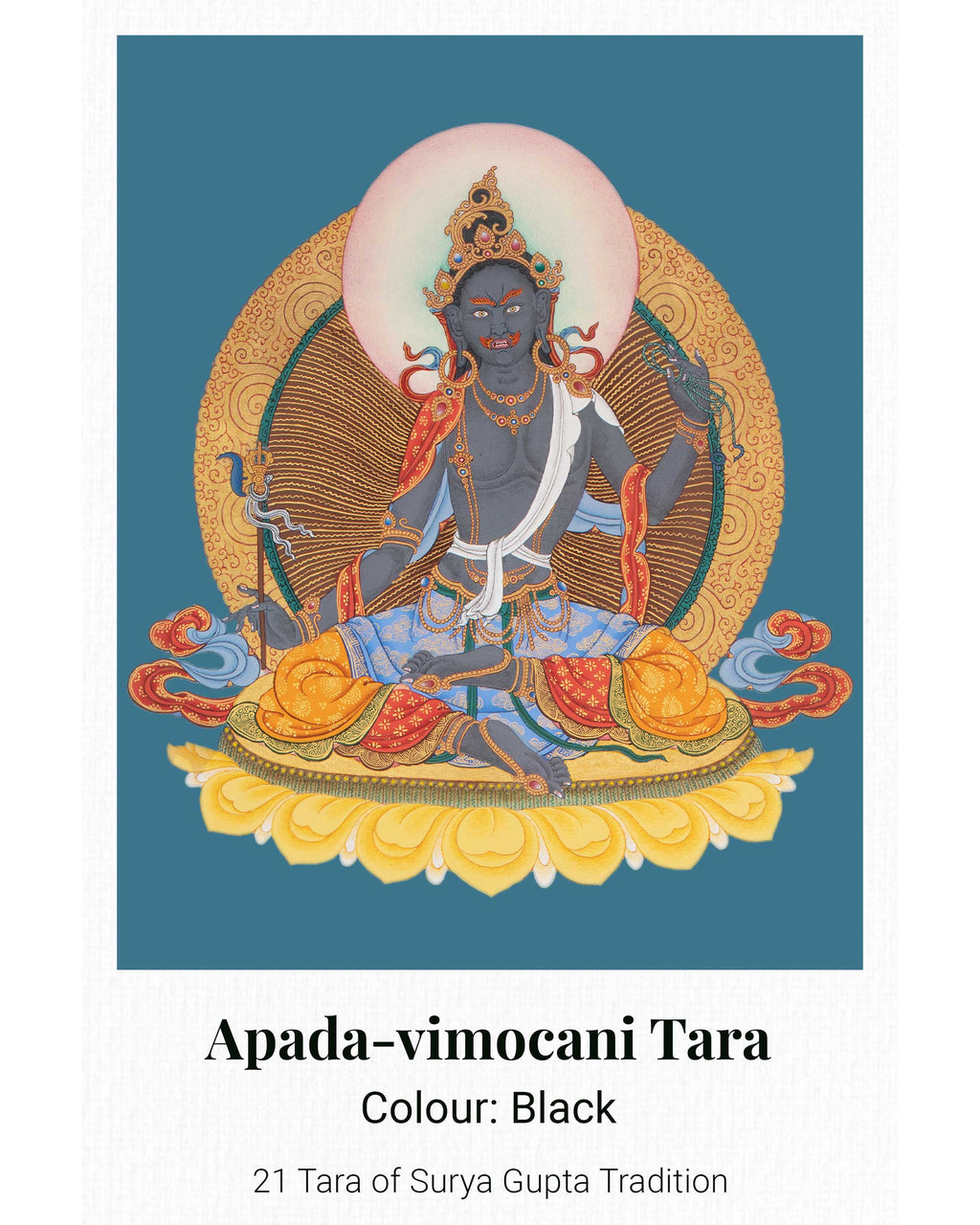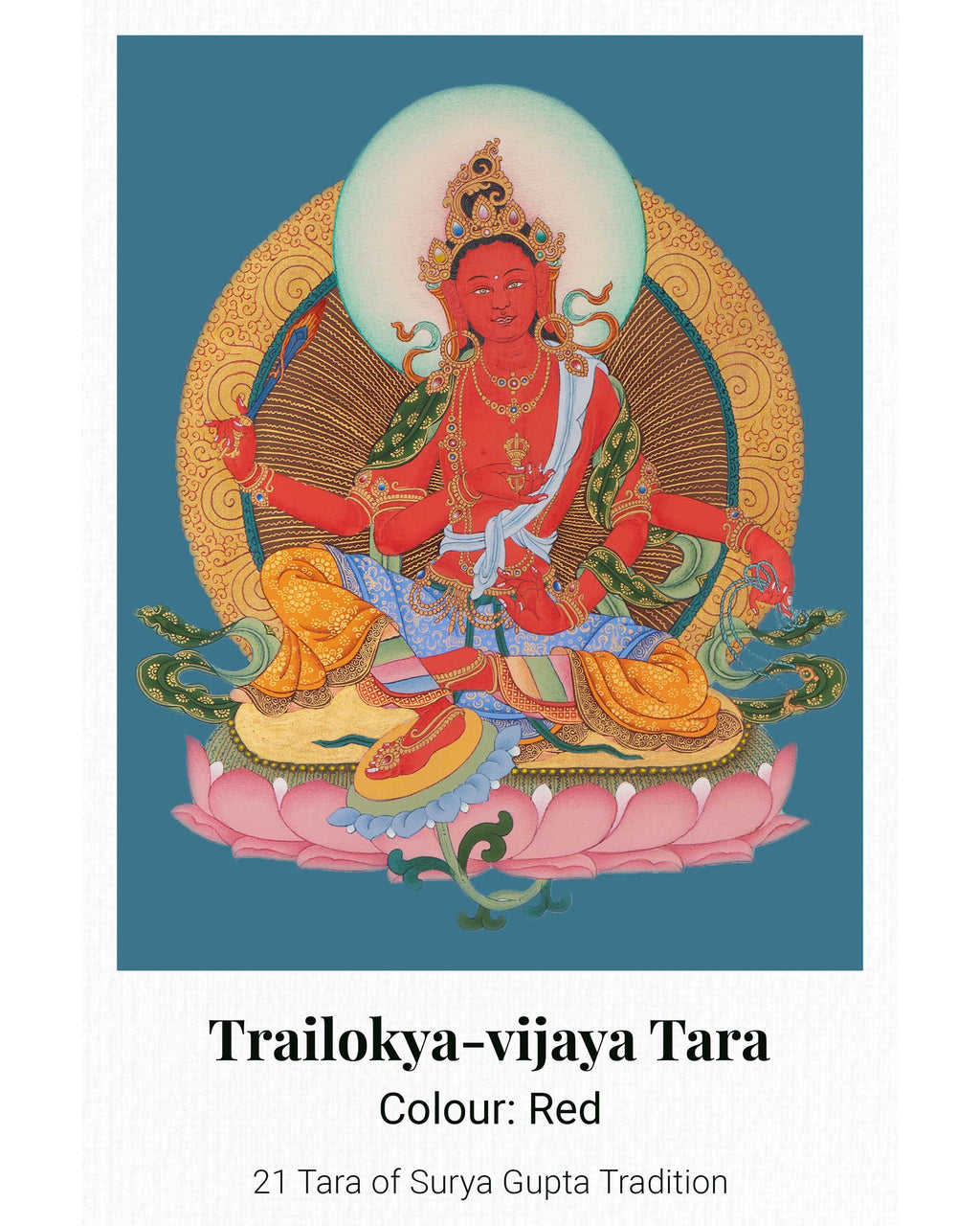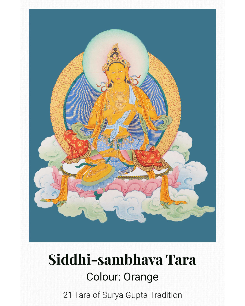 This 21 Tara Canvas Print is a high-quality thangka reproduction from the Maha Siddha Surya Gupta tradition, showcasing the intricate details, vibrant colors, and profound symbolism of the original artwork. Printed on sturdy canvas and customizable in size, it illustrates the many aspects of Tara, the female Bodhisattva representing compassion, wisdom, and protection. Ideal for meditation rooms, personal altars, or spiritual collections, this print functions as a devotional image and a meaningful spiritual aid.