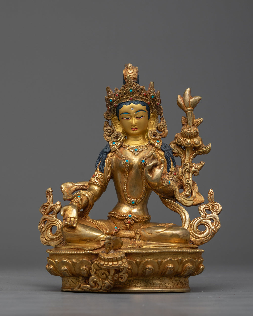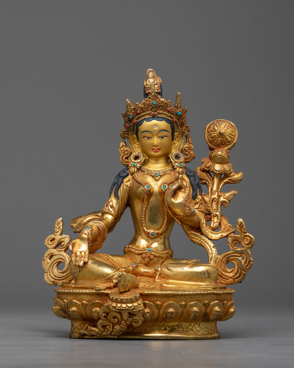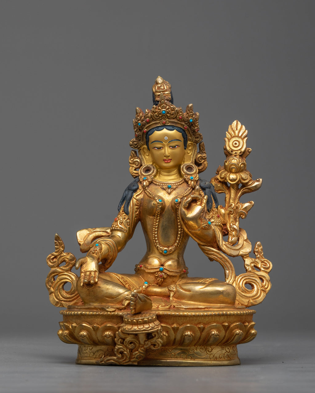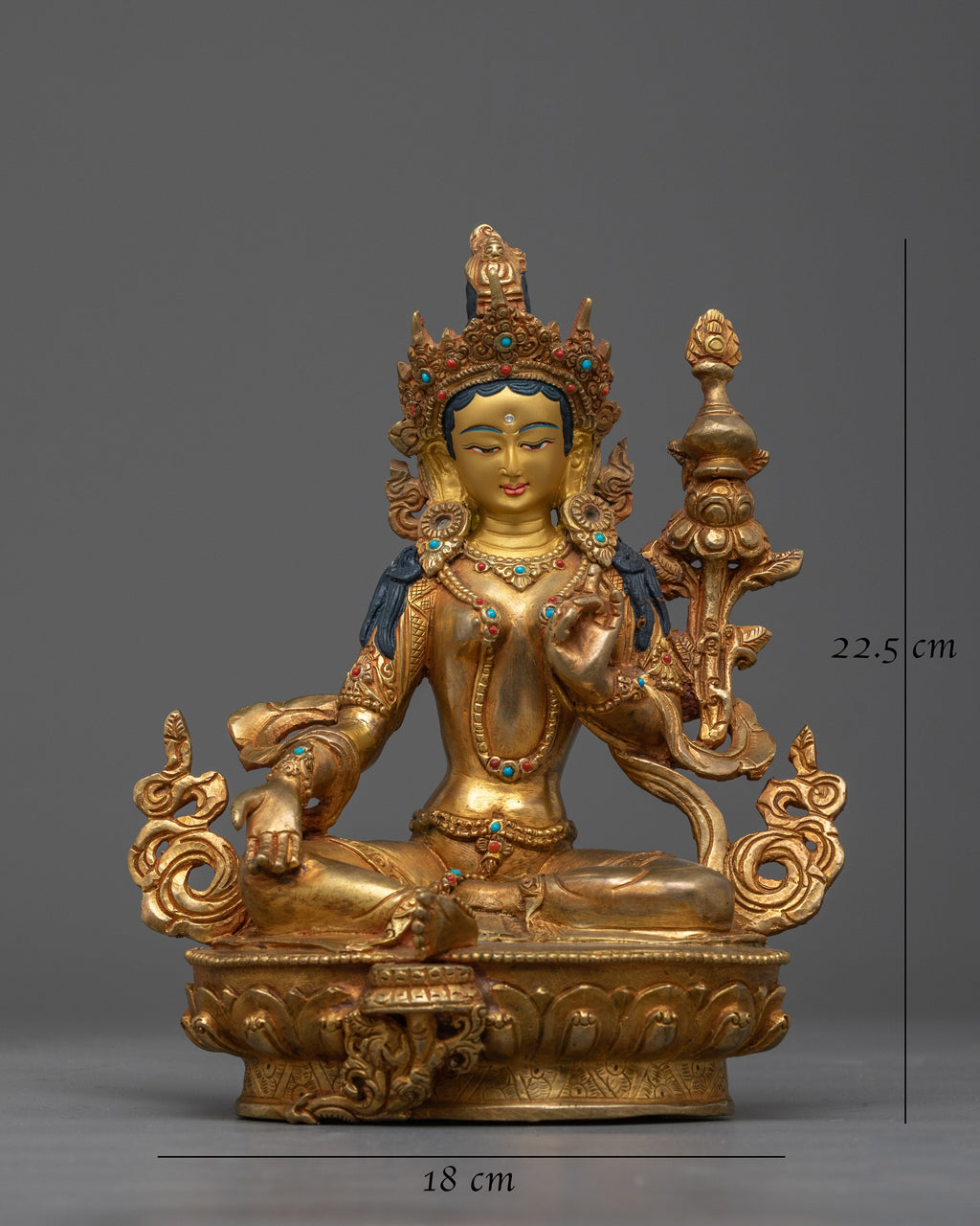 With the 21 Taras Figurine Set, embrace the divine feminine energies of protection and compassion. These beautiful sculptures, which were created with great care and accuracy, are the epitome of compassion and knowledge. With a height of 8.9 inches and a base diameter of 7.1 inches, every figurine exudes a graceful and empowered aura. These statues, with their elaborate acrylic paints and 24K gold gilding on copper bodies, evoke the holy essence of the 21 Taras.