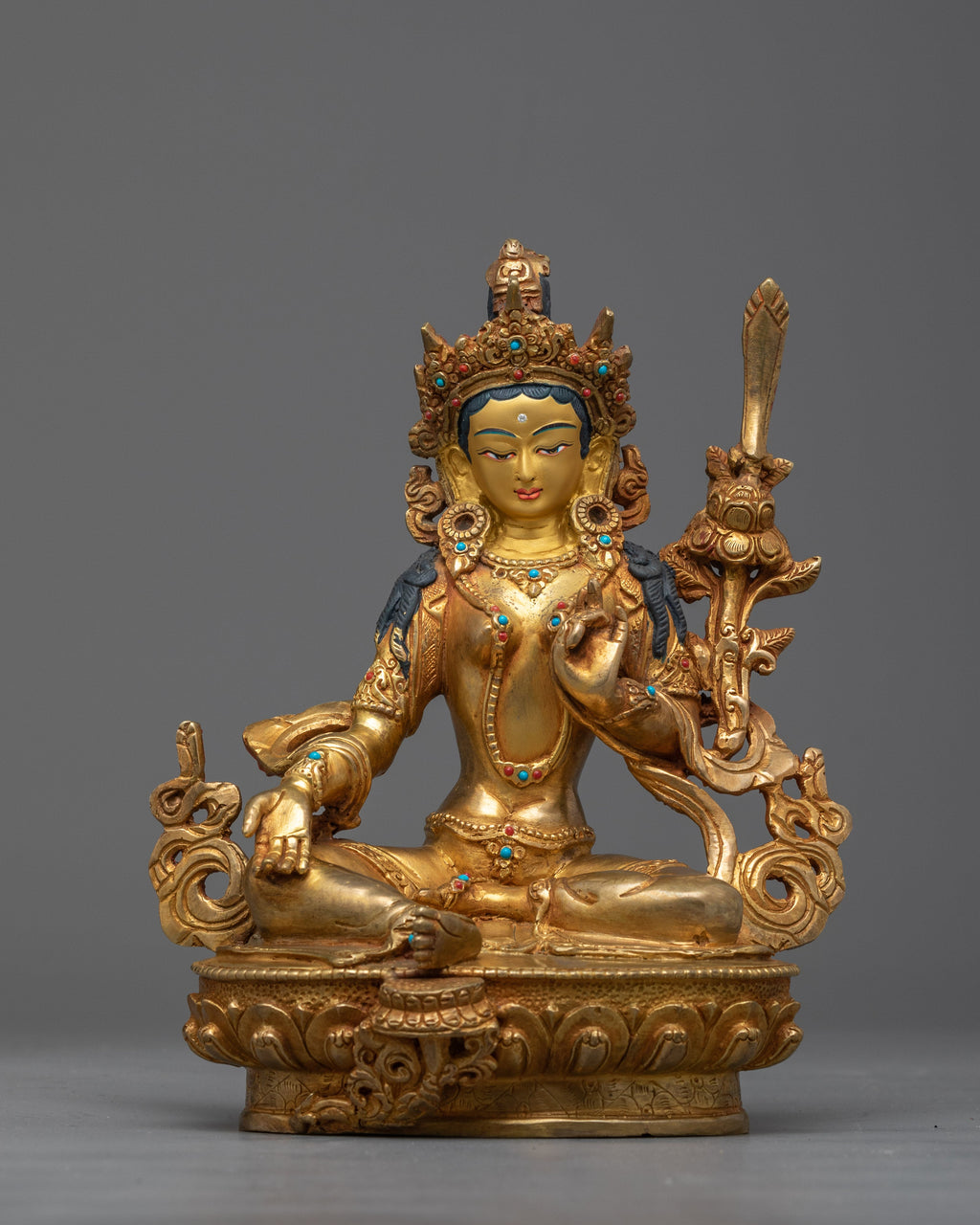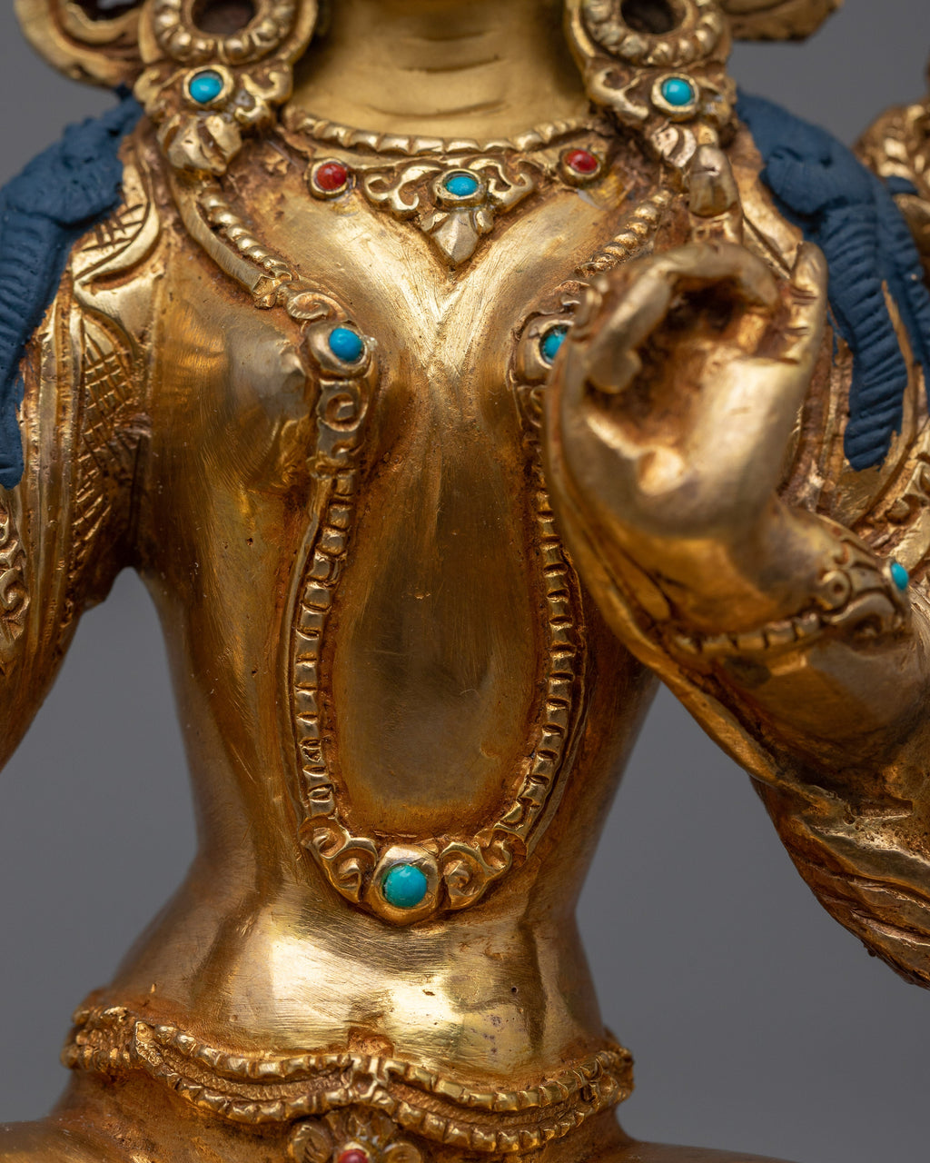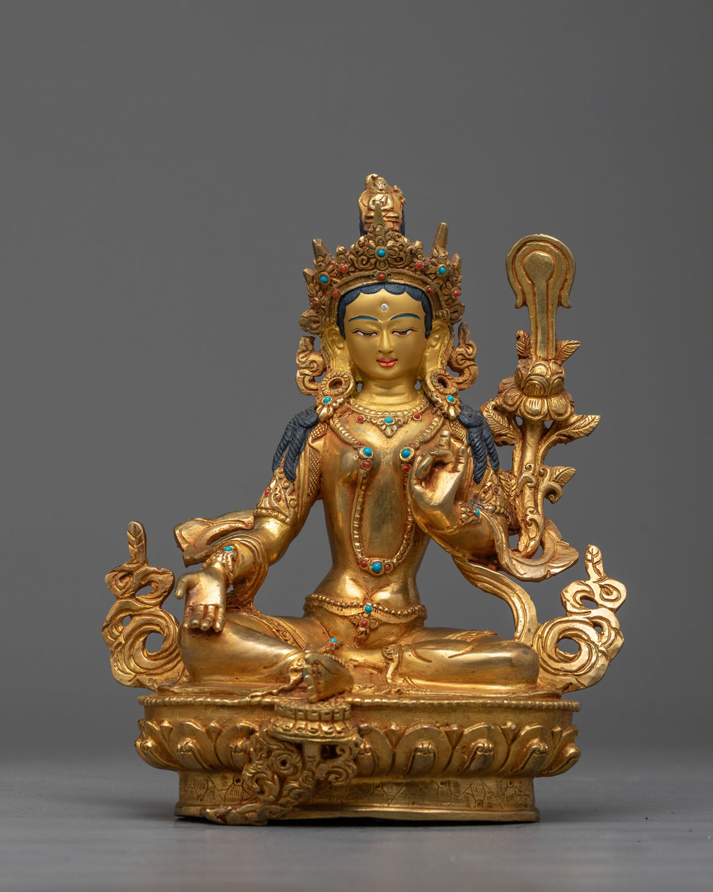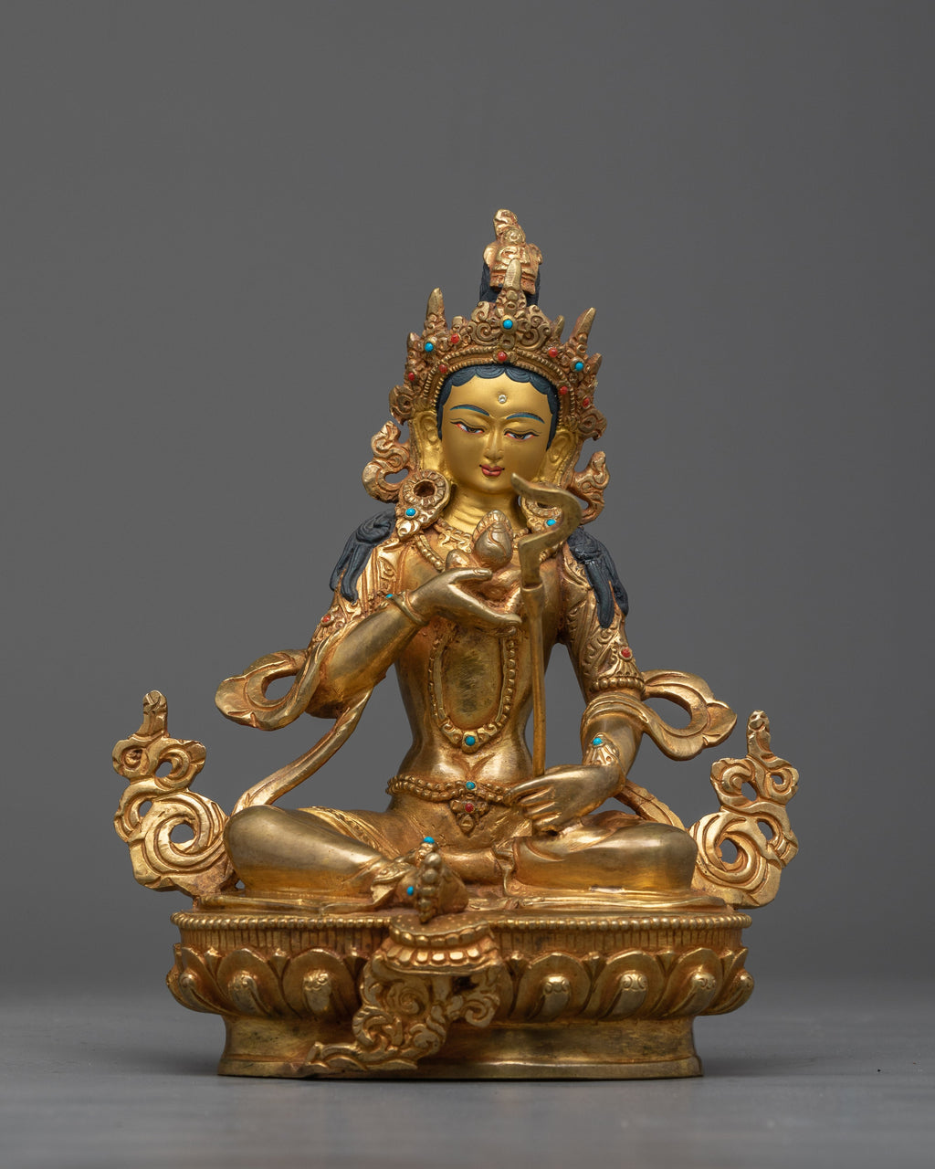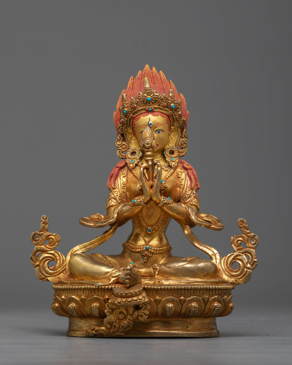 With the 21 Taras Figurine Set, embrace the divine feminine energies of protection and compassion. These beautiful sculptures, which were created with great care and accuracy, are the epitome of compassion and knowledge. With a height of 8.9 inches and a base diameter of 7.1 inches, every figurine exudes a graceful and empowered aura. These statues, with their elaborate acrylic paints and 24K gold gilding on copper bodies, evoke the holy essence of the 21 Taras.