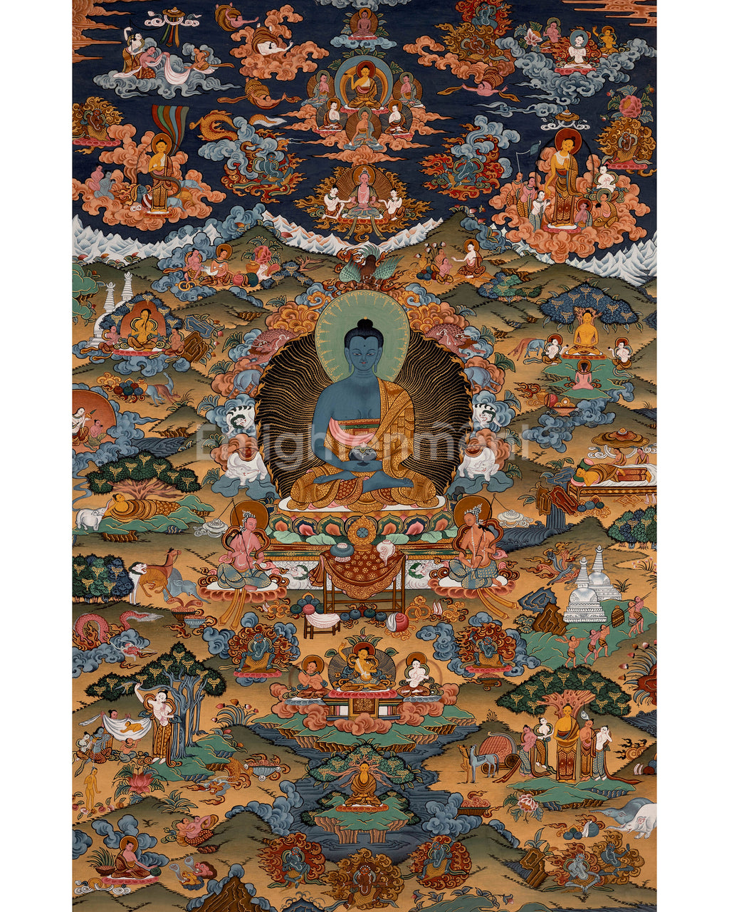 As you requested consecrations/blessings, we can take the thangka to nearby monasteries/Rinpoches from the Boudha Stupa. We kindly ask that you contribute $50 to the monasteries for these blessing/consecration services.