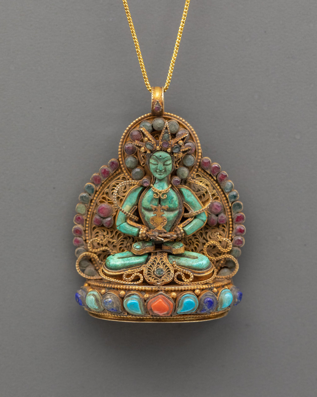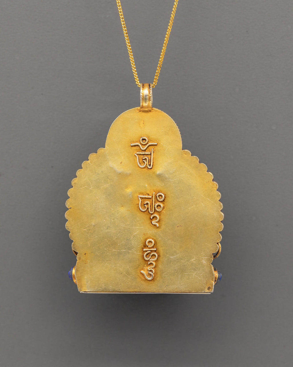 Amitayus Buddha Locket for Accessory | Gold Plated Silver with Coral, Ruby, Lapis Lazuli & Turquoise