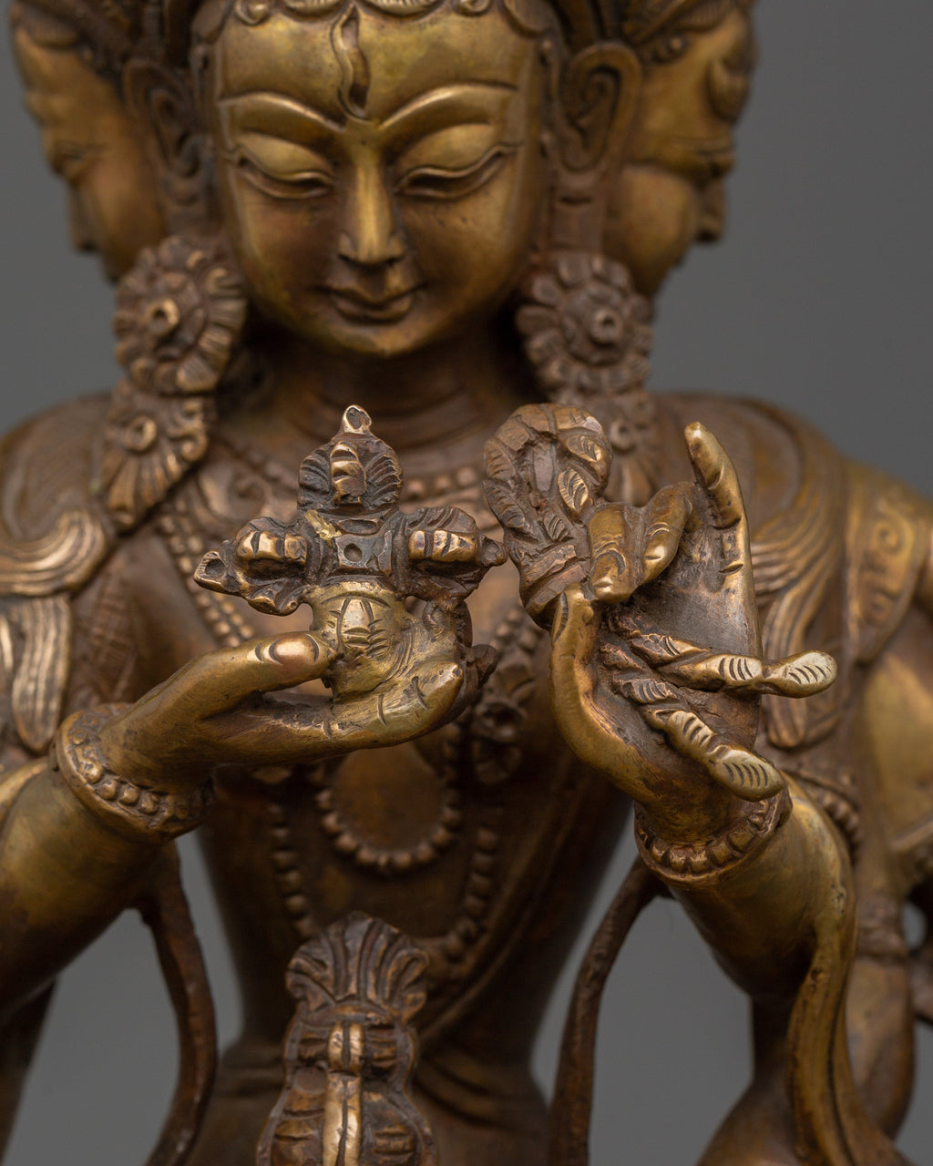 The sacred tools and symbolic gestures (mudras) in each of Namgyalma's arms symbolize her limitless ability to assist sentient beings. The beneficial effects of energy, spiritual clarity, and release are invoked when she is placed on your altar, meditation area, or shrine. The statue, which weighs 2.26 kg and is attractive and powerful, is perfect for practitioners, collectors, and anybody looking to have a stronger connection with the divine.