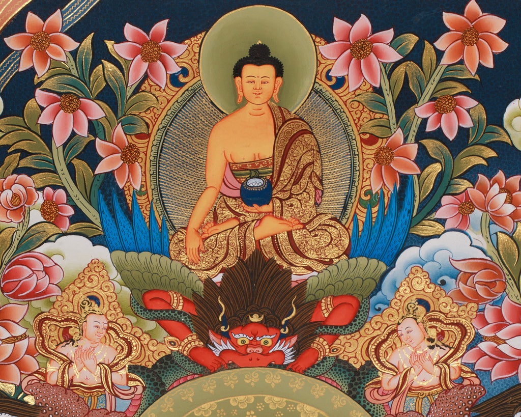 THIS THANGKA IS HAND-PAINTED IN THE TRADITIONAL STYLE BY A NEPALI ARTIST AND THE QUALITY IS HIGH