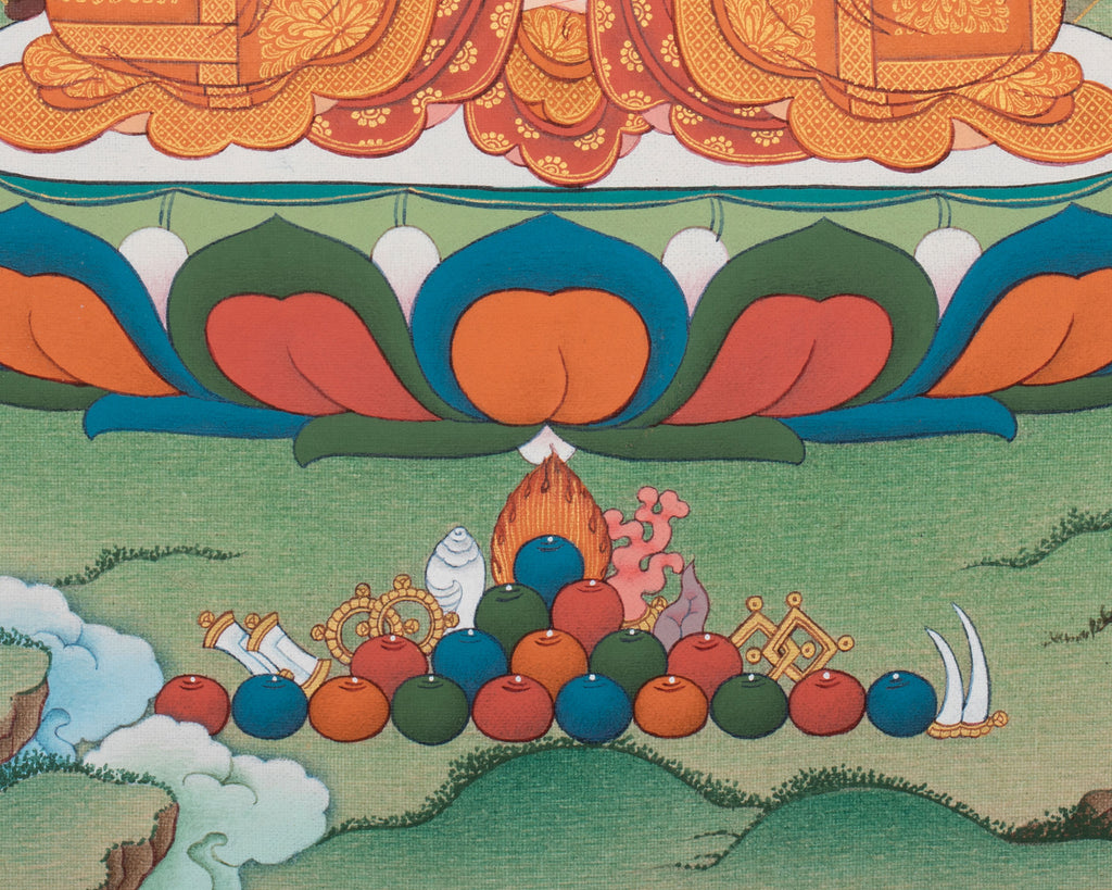 As requested for consecrations/blessings, we can take the thangka to monasteries or the rinpoche from the nearby Boudha Stupa. We kindly ask that you offer $50 to support the monasteries for the blessings/consecration service.