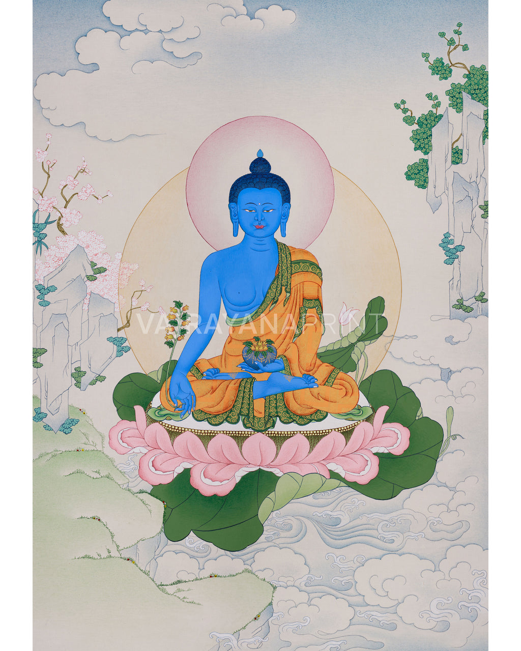 Sacred Bhaisajyaguru Thangka Print | Guardian of Physical and Spiritual Well-Being