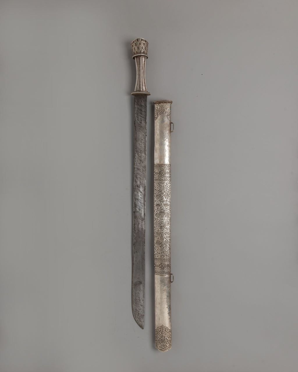 Bhutan's creativity and cultural legacy are exhibited through the intricate details on the blade and hilt. This sword is well-balanced and suitable for use in Buddhist ceremonies, meditation areas, or as a valuable collectible. The Bhutanese Silver Sword provides classic beauty and cultural significance to any environment, whether in rituals or in a sacred place.