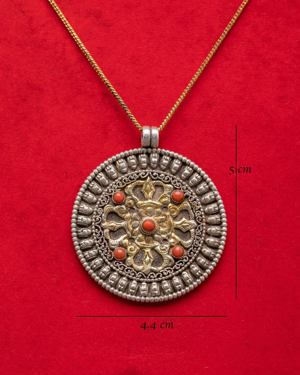 Coral, cherished for its vitality, energy, and grounding properties, enhances the locket’s spiritual significance. Perfect for meditation practitioners, yoga enthusiasts, and collectors of sacred artistry, this Tibetan pendant seamlessly blends traditional craftsmanship with deep cultural meaning. Whether worn daily or placed on your altar, the Bishwo Vajra Locket invites peace, protection, and devotion into your life. Add this remarkable piece to your collection to experience the beauty of Tibetan heritage and the power of spiritual symbolism.
