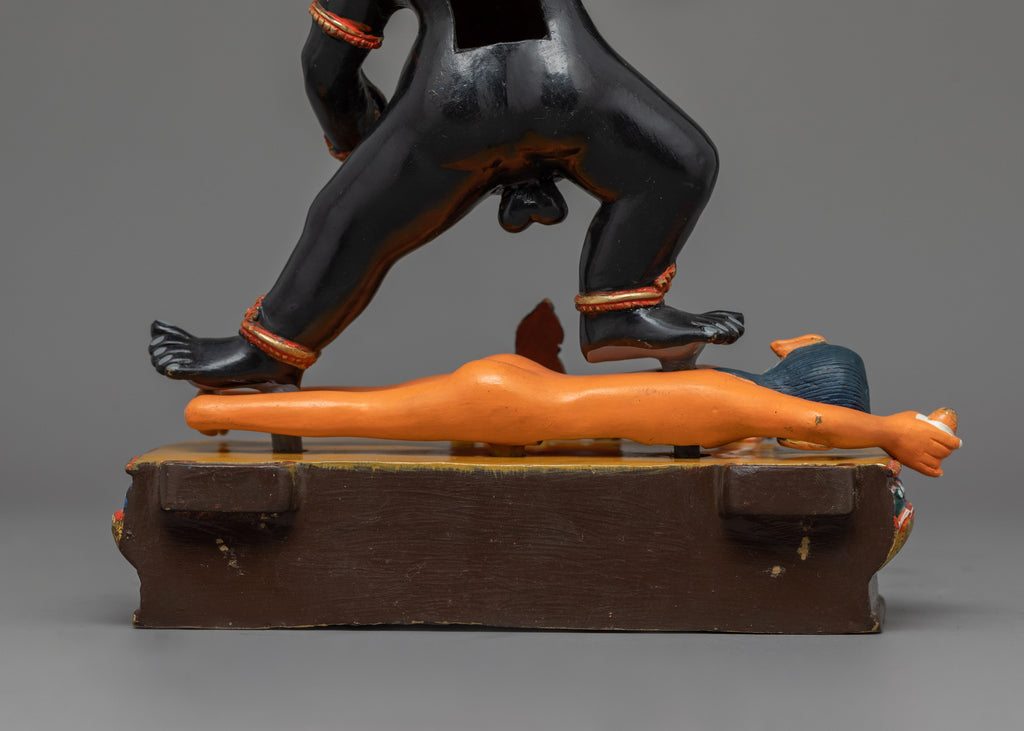 This 2.68 kg statue reflects a sense of protection and stability and has both aesthetic and spiritual importance. Intricately painted details showcase the deity's potent force, while the smooth, golden surface invites a physical connection. This statue is perfect for practitioners of Dzambhala Sadhana since it may be used as a center for invoking forth blessings of prosperity, success, and the elimination of barriers. This statue enhances the energy and ambiance of your surroundings by presenting an aura of strength, prosperity, and spiritual protection, whether it is utilized in ritual practice or put on an altar.