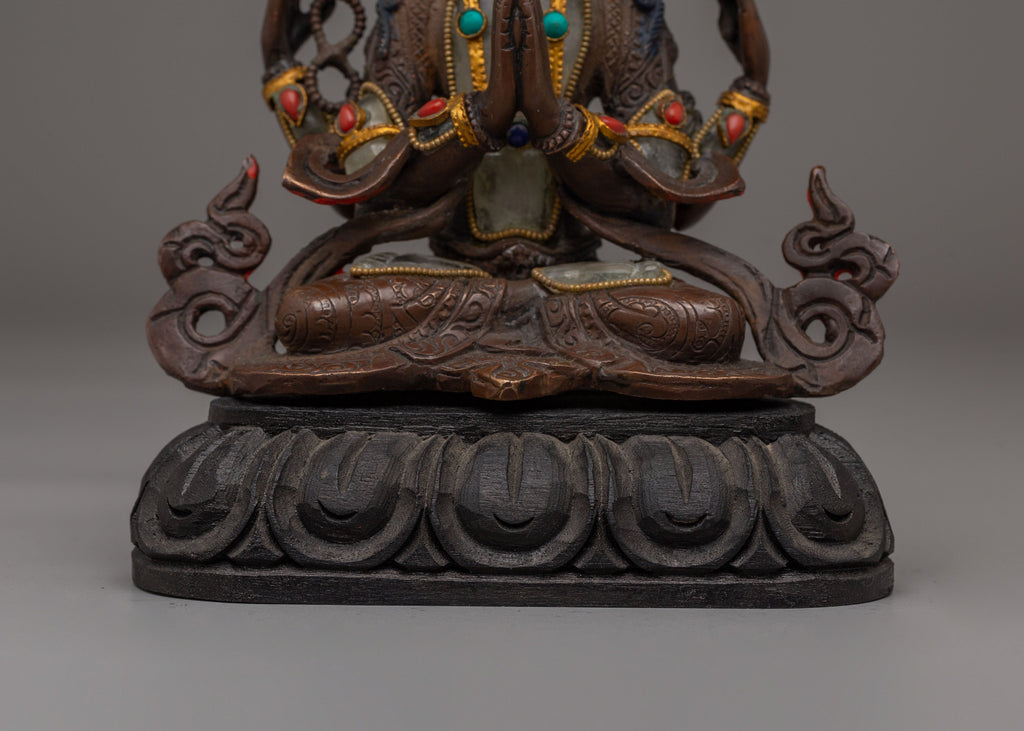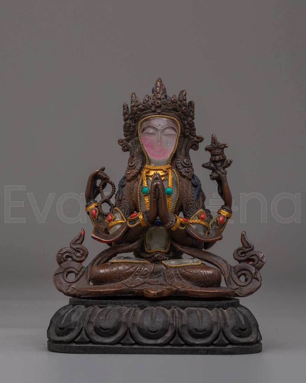 Copper Bodhisattva Chenrezig Nepal Statue | Handcrafted Spiritual Art Piece