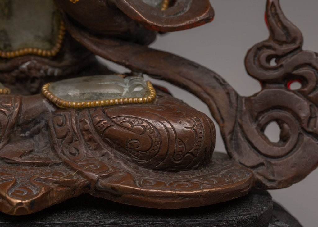Incorporating the Copper Bodhisattva Chenrezig Nepal Statue into your home or meditation space not only adds aesthetic value but also invites tranquility and spiritual energy into your life. Whether used as in your living room or in a serene meditation area, this handcrafted statue represents the ideals of compassion, wisdom, and inner peace. Its intricate craftsmanship and symbolism make it a timeless piece that blends spiritual meaning with fine artistry.