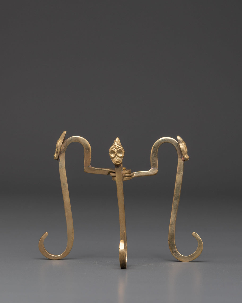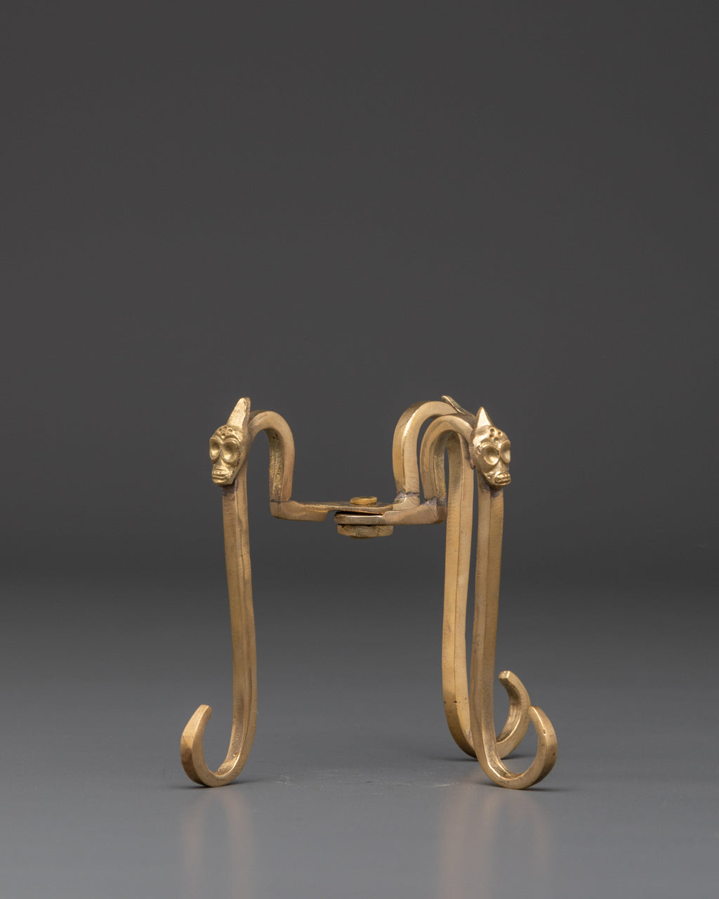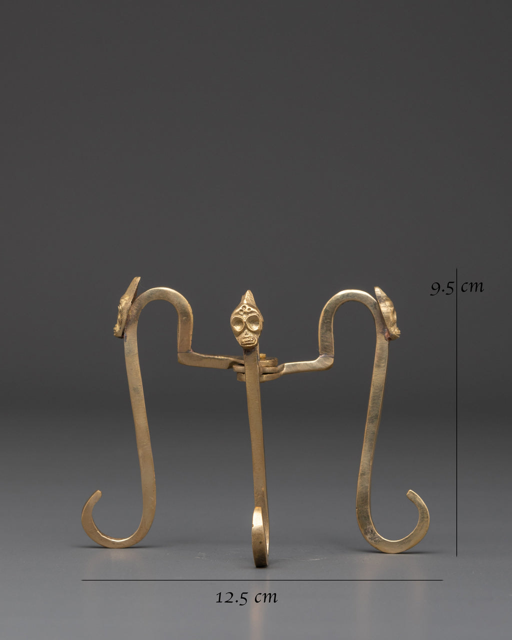Crafted from brass, this Kapala Stand is both functional and symbolic. Its design makes it a perfect addition to your altar or meditation space, enhancing the spiritual energy in your surroundings. Use this stand as part of your ritual offerings or as a decorative piece that holds deeper meaning for your spiritual journey. It is a powerful tool to guide your practice and meditation, reminding you of the deeper truths in Tibetan Buddhism.