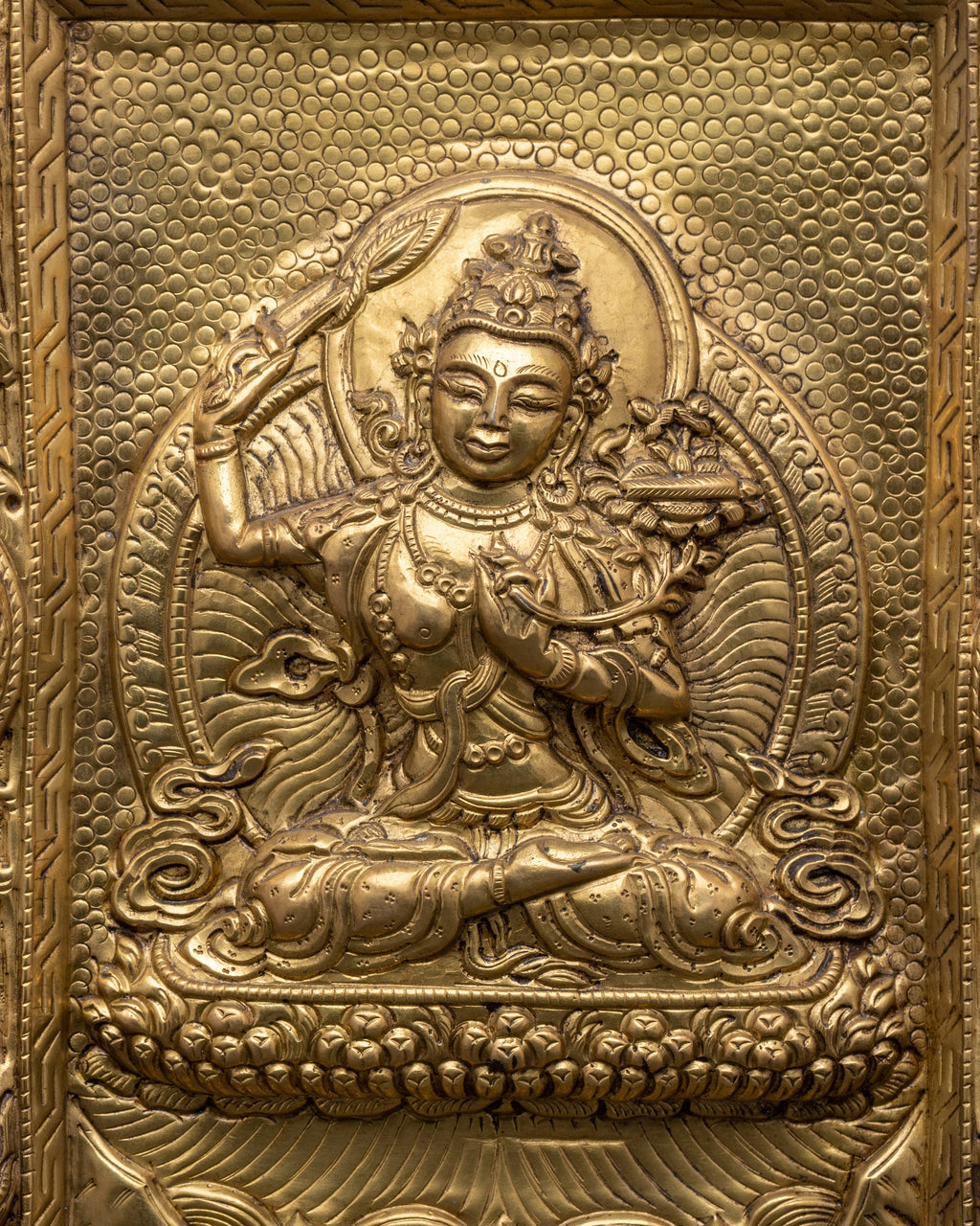 Brass Metal Thangka with Manjushri Carved | Bodhisattva Metal Wall Hanging
