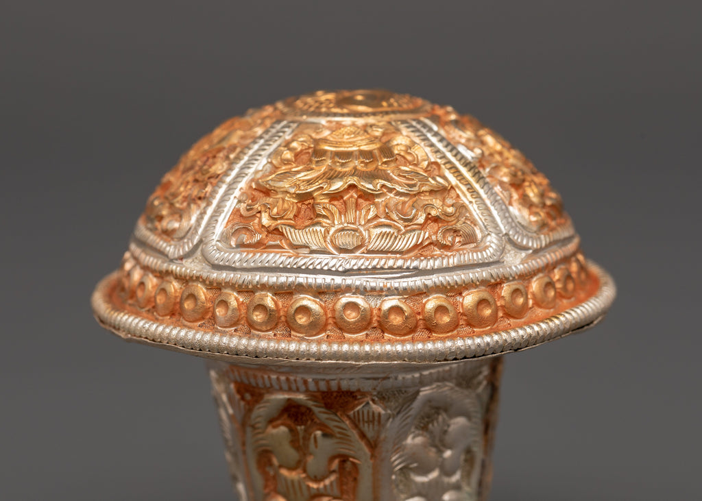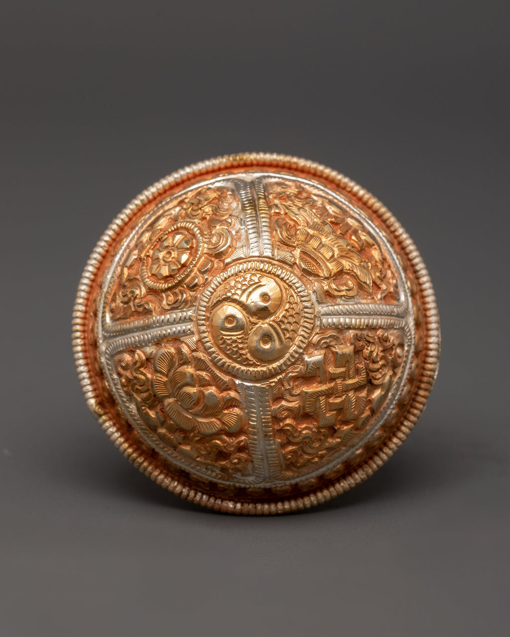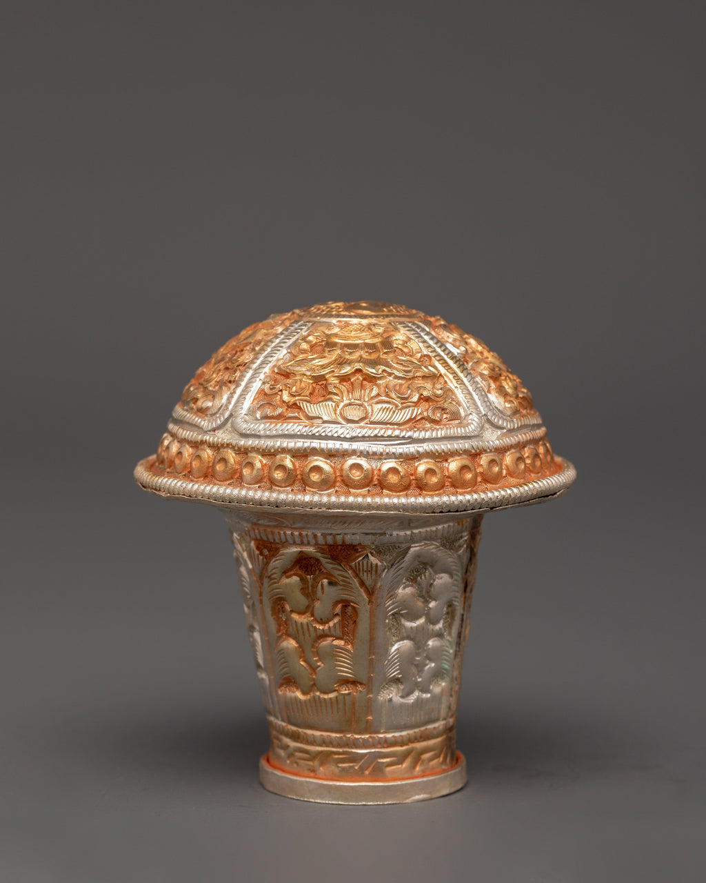 The Brocade Stick Cap Home Decor is a wonderfully handcrafted ornamental accessory made of brass electroplated with gold and silver for an exquisite finish. With a height of 8 cm, a width of 7 cm, and a round base of 3 cm, this beautiful item makes the ideal statement in any living room, office, or religious location. The elaborate brocade design provides a touch of traditional workmanship to your home decor, making it an eye-catching piece for individuals who value excellent metal art. The combination of gold and silver plating gives it a classy, ageless appearance that matches a wide range of home designs, from traditional to beautifully handcrafted, ornamental accessories made of brass that have been electroplated with gold and silver for a luxurious contemporary.