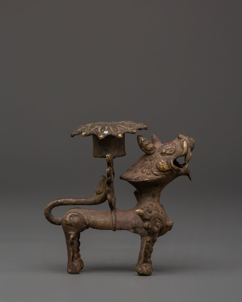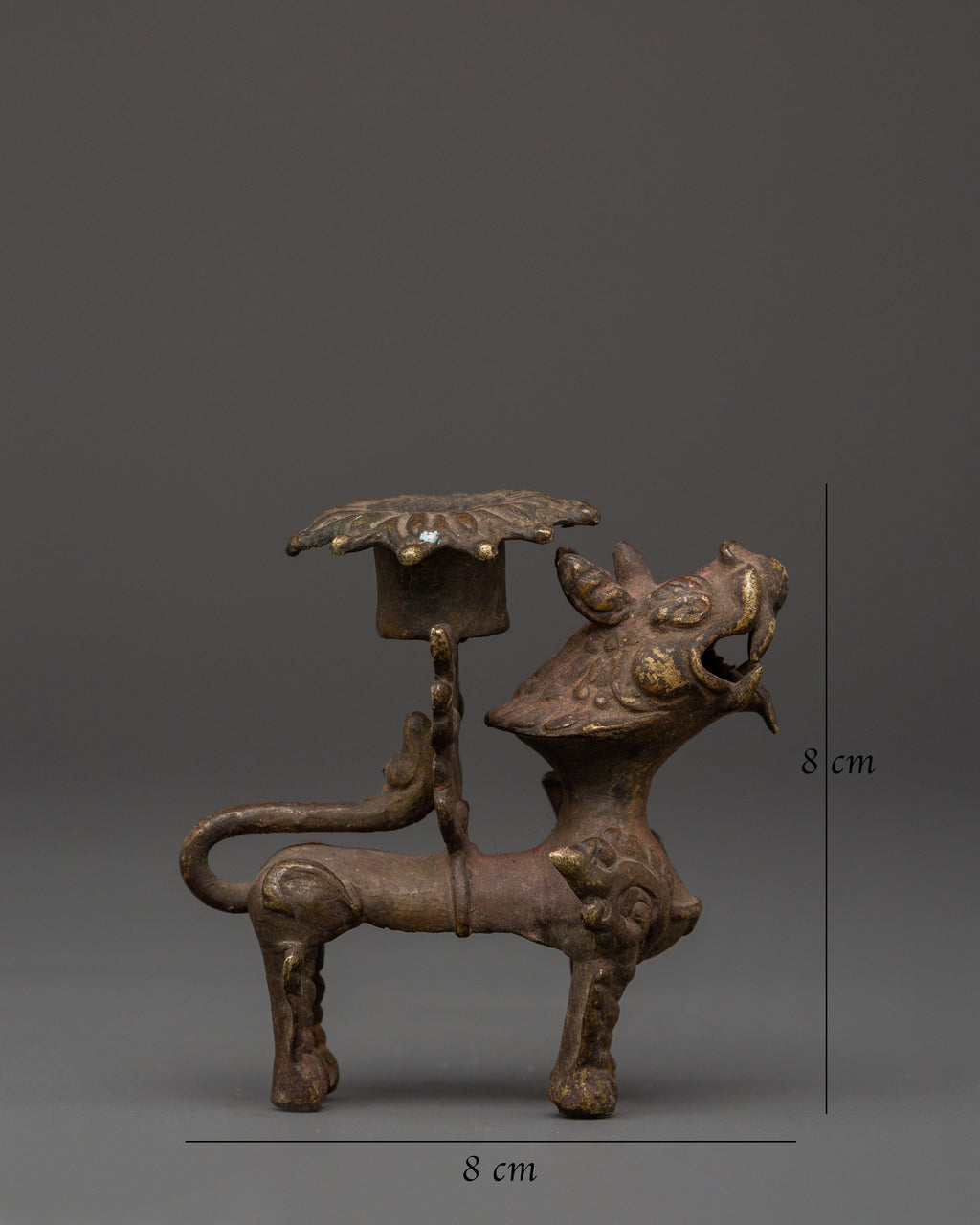 Bronze Lion Candle Holder for Hindu Rituals | Meditation Accent