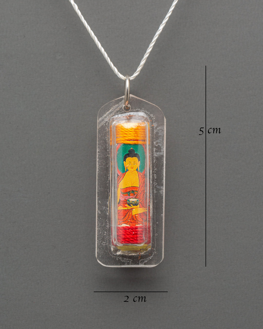 This Buddha Buti Amulet is a sacred Tibetan charm designed to offer spiritual protection, peace, and mindfulness. Carefully handcrafted with colorful threads and canvas, this buti encapsulates sacred mantras and prayers, symbolizing the Buddha’s compassionate energy. Encased in a plastic cover, it is both lightweight and practical, allowing you to carry divine blessings wherever you go. The radiant hues of the threads represent harmony, spiritual awakening, and the balanced energy of body, mind, and spirit.