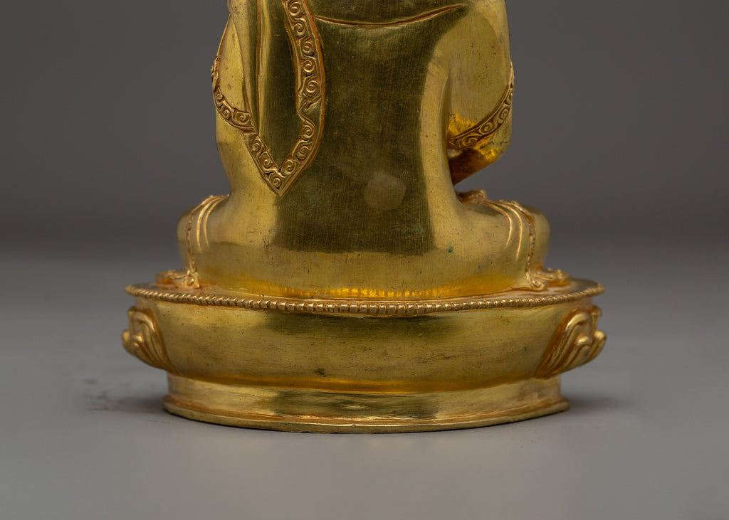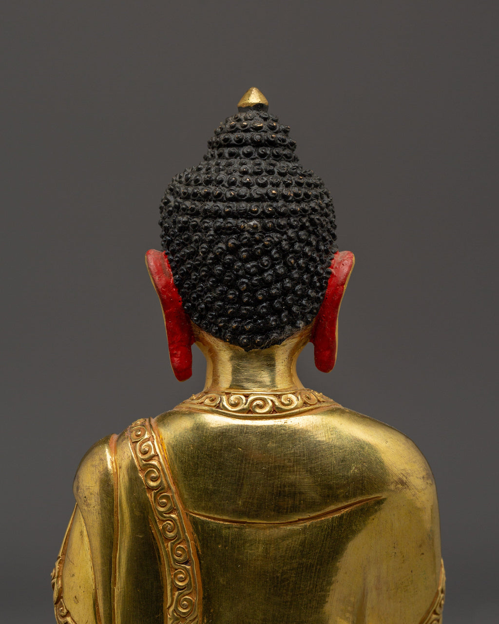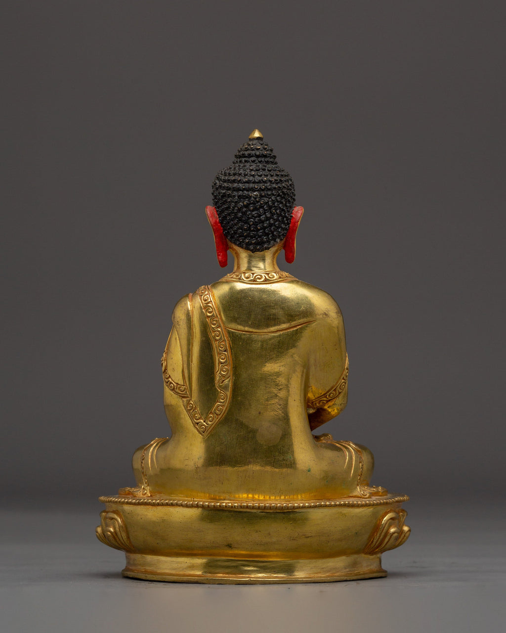 The Buddha of Compassion, Amitabha Buddha Statue, stands 8.3” (21 cm) tall with a base width of 6.1” (15.5 cm) and weighs 1.24 kg. Meticulously handcrafted from a copper body, 24K gold gilding, and detailed gold and acrylic paintings. Amitabha, the Buddha of Infinite Light, is a central figure in Pure Land Buddhism and is revered for his boundless compassion and the promise of rebirth in the Western Pure Land. This beautifully detailed statue is perfect for personal altars, meditation spaces, or as a spiritual gift symbolizing peace, wisdom, and liberation.