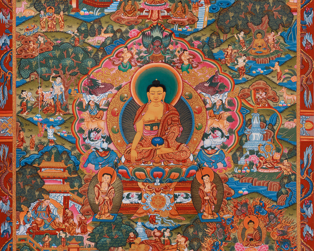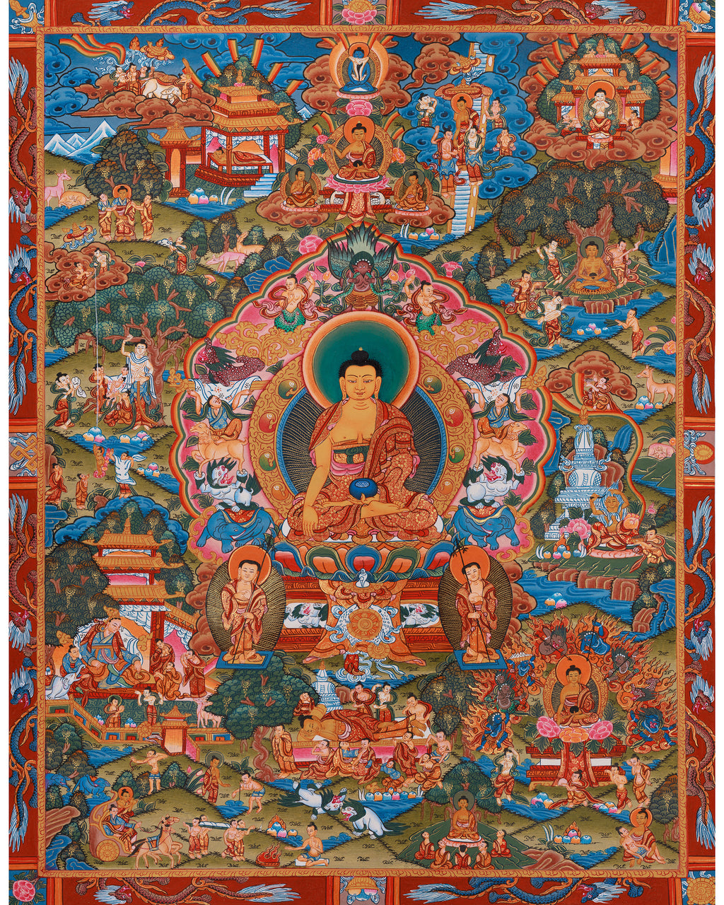 Exquisite Buddha Life Story Thangka – A Sacred Depiction of Enlightenment