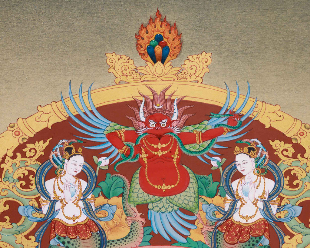 HAND-PAINTED WITH NATURAL LHASA STONE COLOR AND GENUINE 24K GOLD IN TRADITIONAL KARMA GADRI STYLE