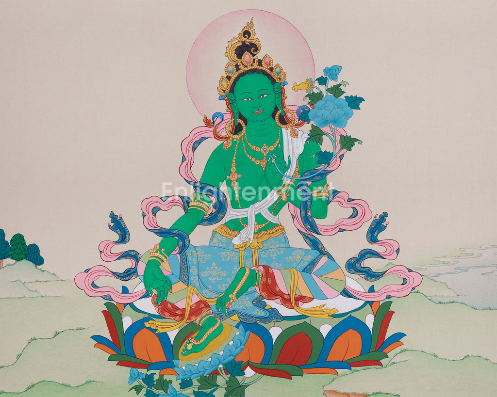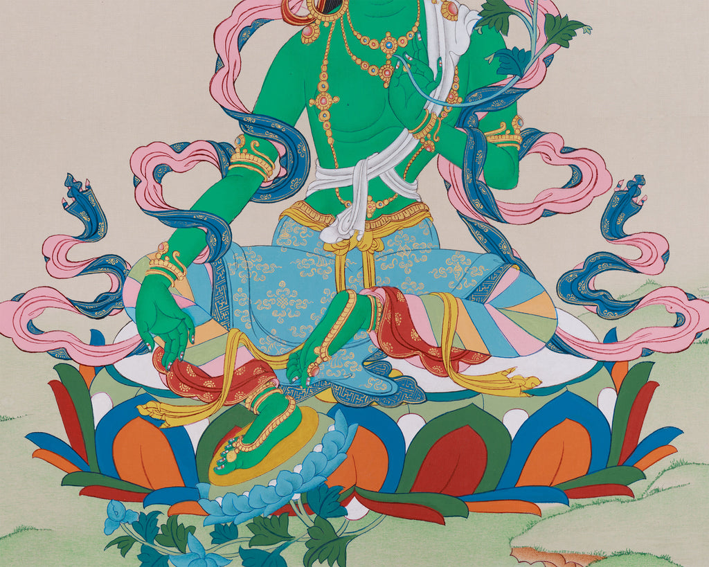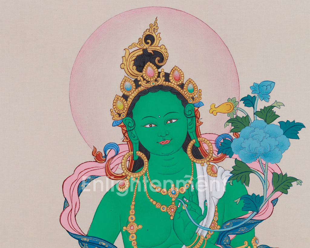 Tibetan Buddhism Green Tara Painting | The Divine Protector Who Heals and Blesses All Beings with Compassion and Wisdom