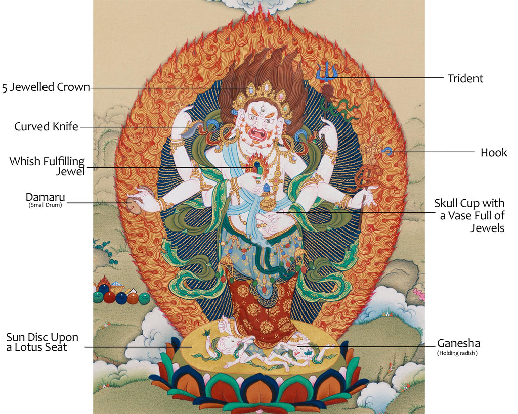Hand-Painted Buddhist Deity White Mahakala Thangka | The Wrathful Protector Who Blesses with Wealth, Wisdom, and Spiritual Purity