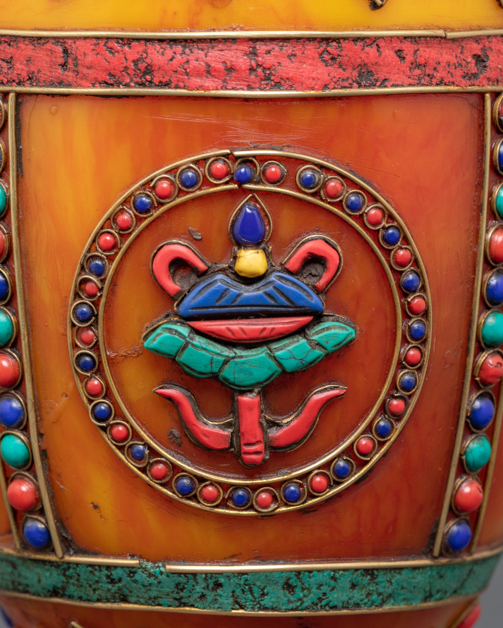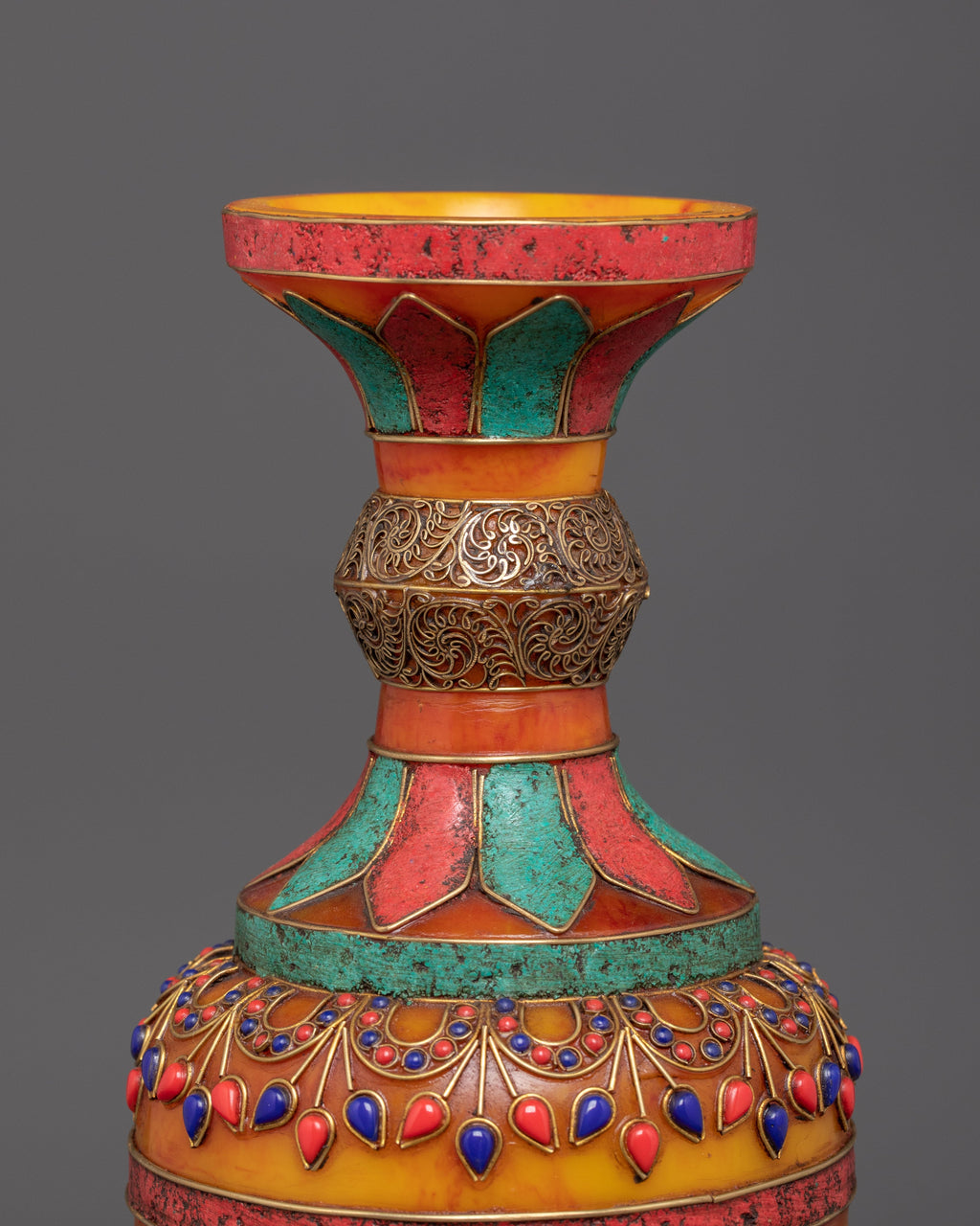 Handmade Buddhist Flower Vase Set for Decor | Tibetan Home Decor with Jade