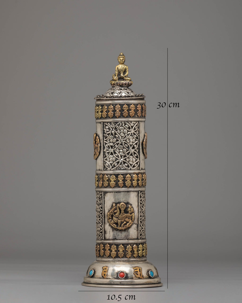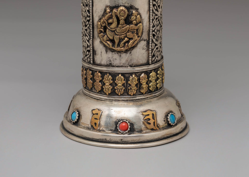 Handcrafted Buddhist Incense Holder | Gemstone Inlaid Copper Ritual Pot