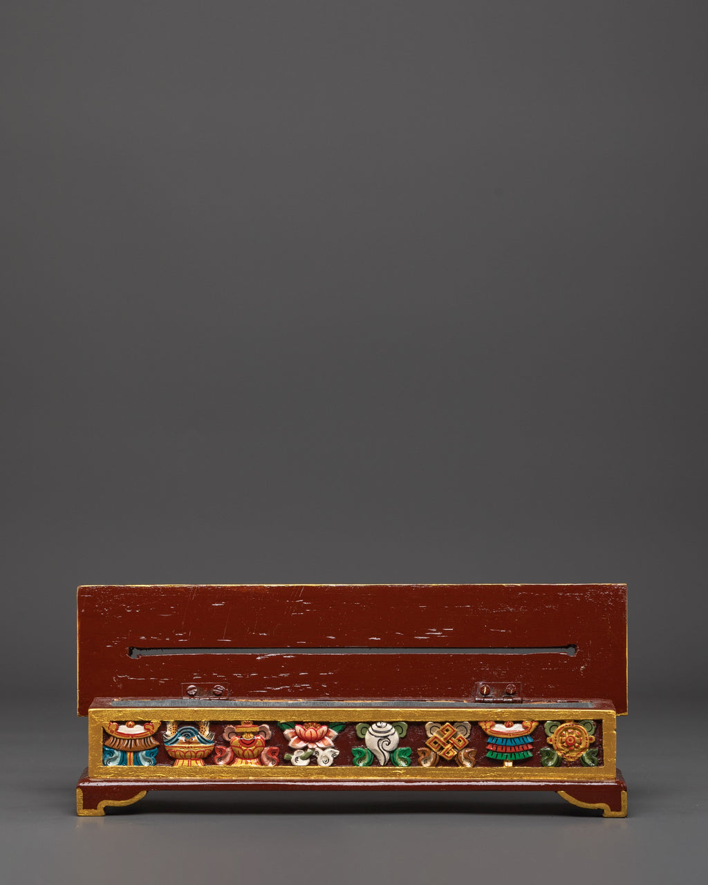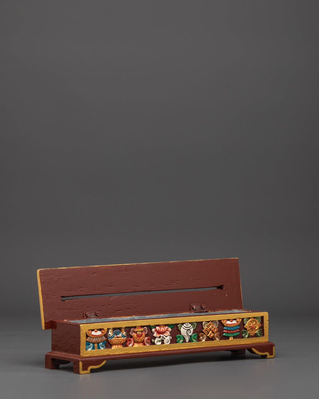 Handcrafted Buddhist Incense Burner with Eight Auspicious Symbols | Wooden Spiritual Art