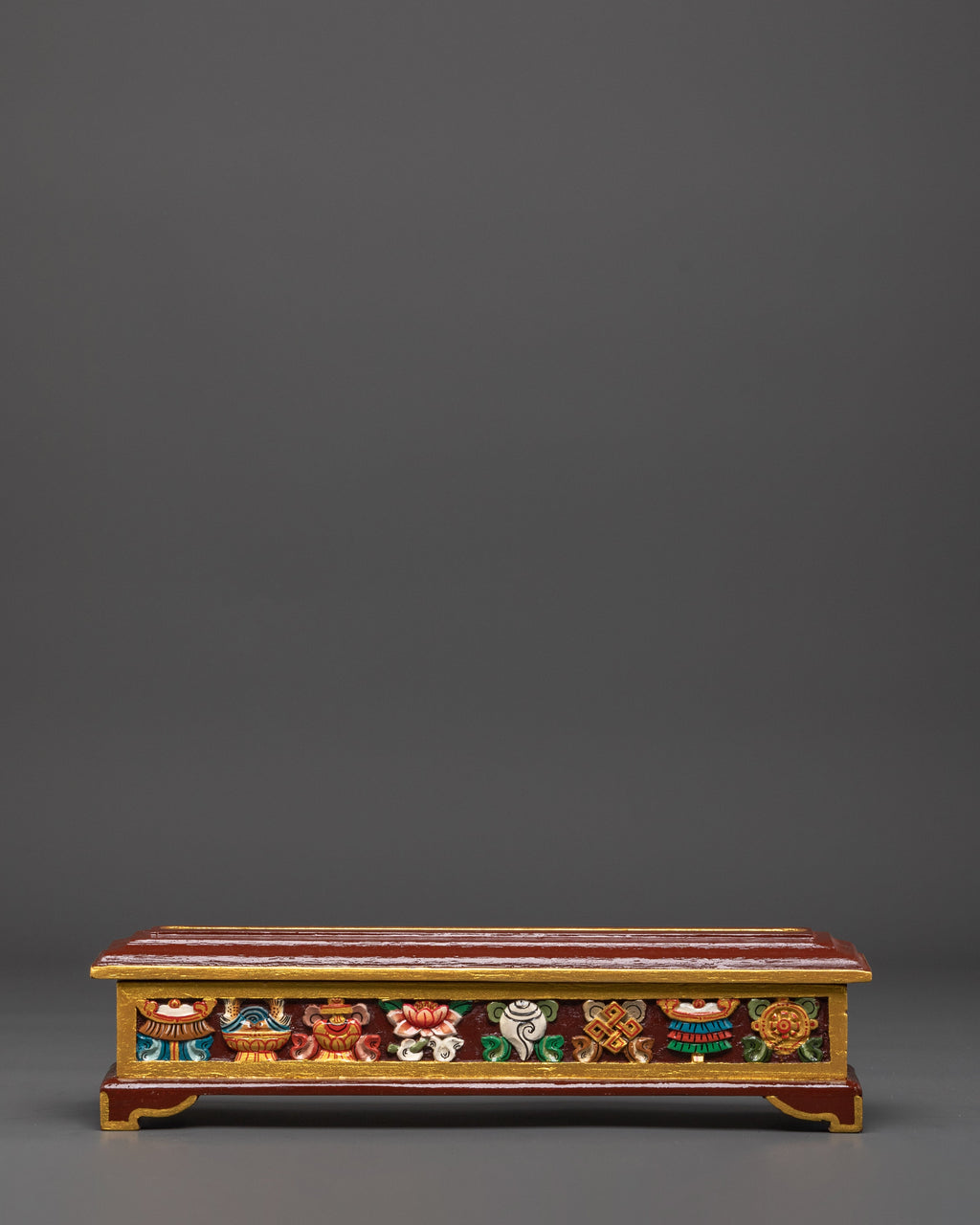 Elevate your meditation or sacred space with this Buddhist Incense Burner, a harmonious blend of tradition and artistry. Expertly handcrafted from wood and adorned with vivid acrylic colors, it features the Eight Auspicious Symbols, each carrying deep spiritual significance. Measuring 7.5 cm tall, 31 cm wide, and 7.5 cm deep, this burner is perfectly sized to hold your favorite incense while adding a graceful, serene presence to any room. Weighing just 0.41 kg, it’s easy to move yet sturdy enough for daily use. Enhance your rituals and invite calm energy into your home with this meaningful, beautifully crafted incense burner.