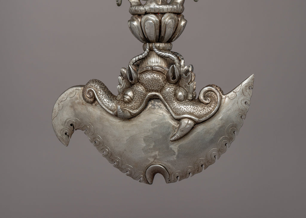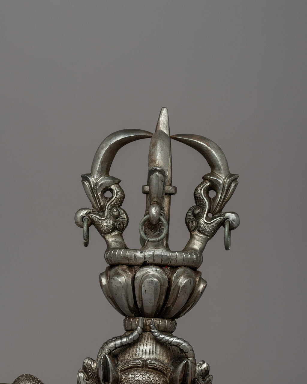 - Half-vajra handle, symbolizing strength, wisdom, and enlightenment.