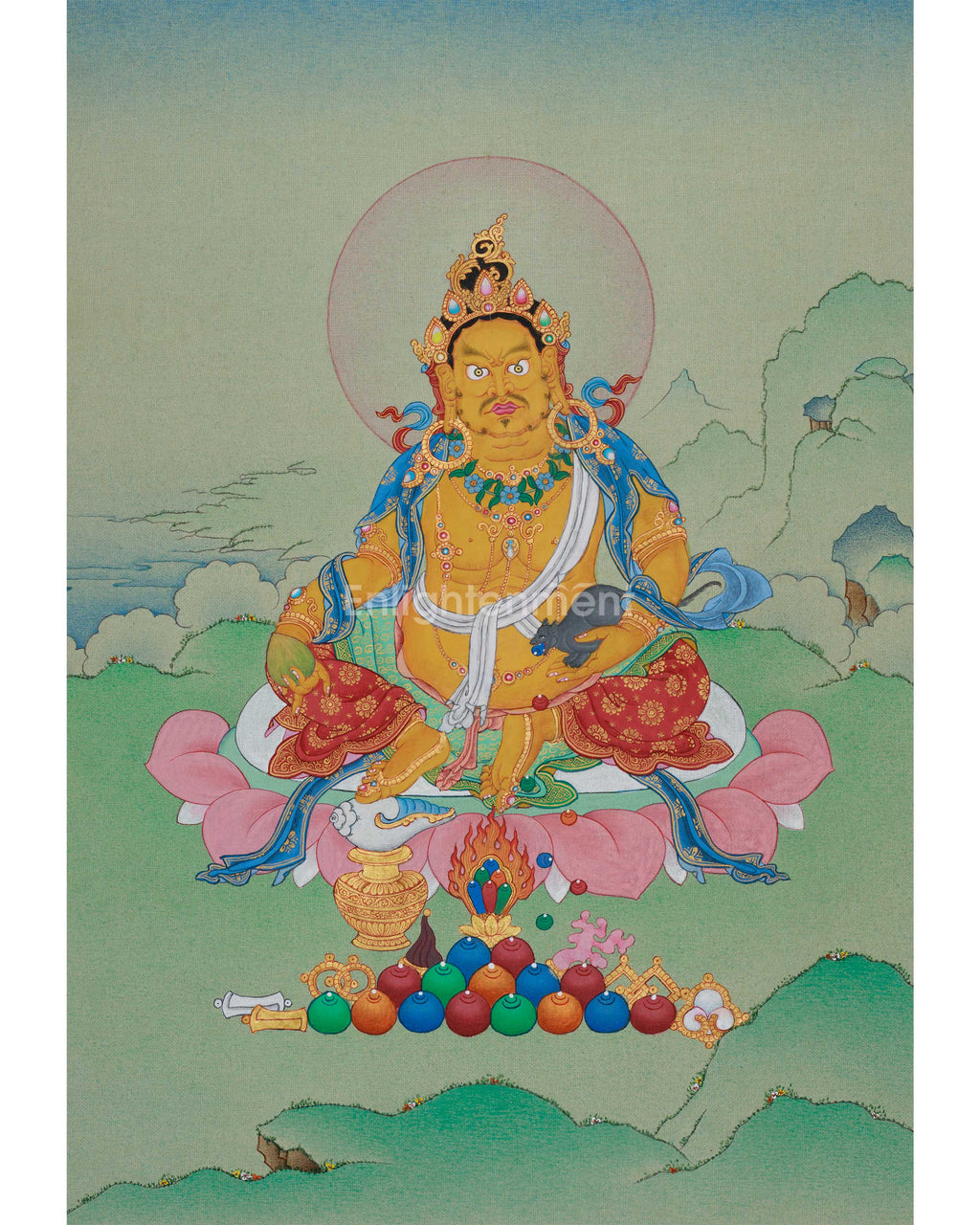Buddhist Kubera Thangka | Hand-Painted with 24K Gold & Natural Stone Colors