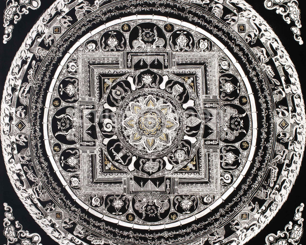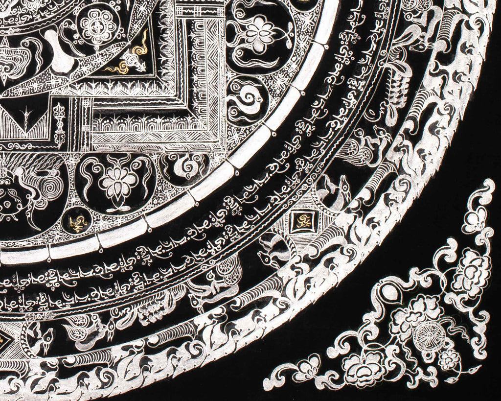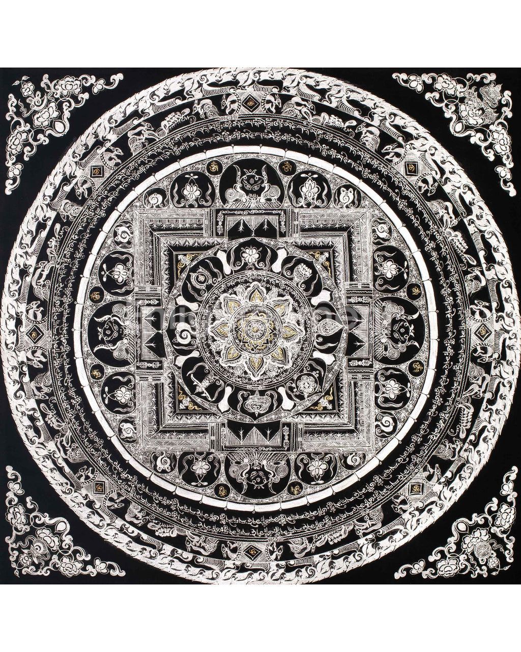 Spiritual Buddhist Mantra Mandala Thangka | Pure Silver Mandala Painting