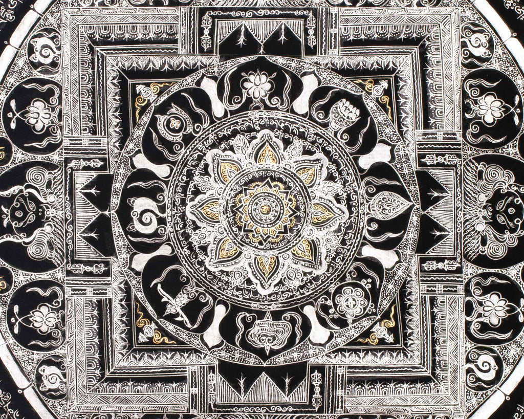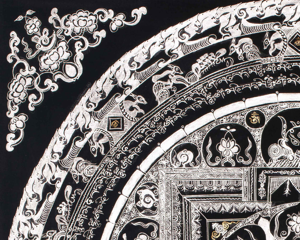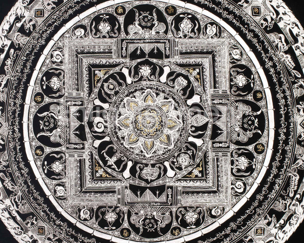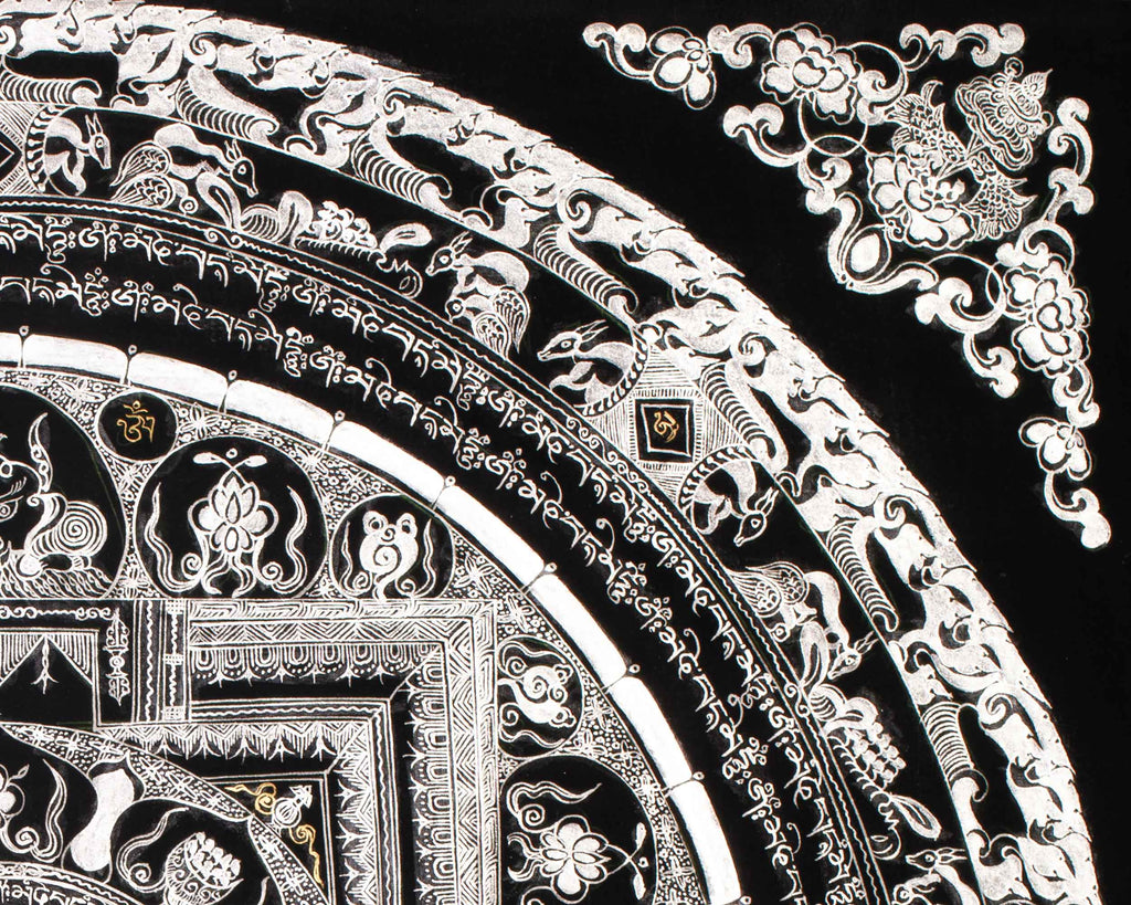 Spiritual Buddhist Mantra Mandala Thangka | Pure Silver Mandala Painting