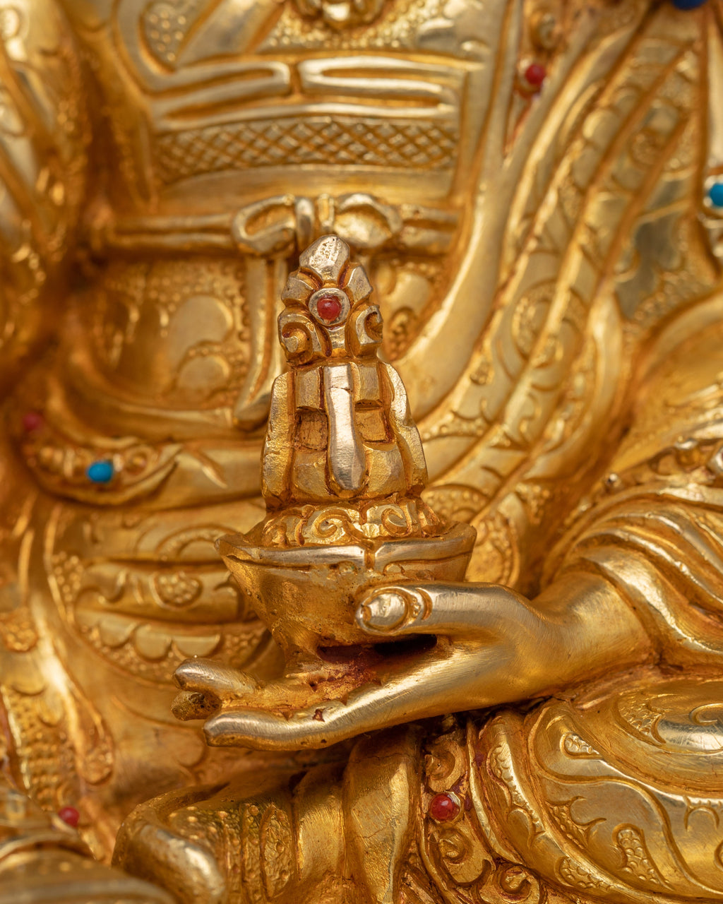 Sacred Buddhist Master Padmasambhava Statue | Tibetan Altar Deity with Turquoise Coral Inlay