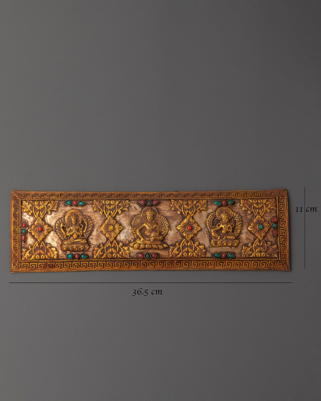 This Handcrafted Buddhist Prayer Book immerses you in Tibetan Buddhism's rich spiritual legacy. This prayer book, which measures 11cm in height and 36cm in breadth and weighs 0.87kg, is intended for both spiritual and ornamental use. The book is made of copper with gold and silver polish and has detailed turquoise and coral inlay, which adds color and spiritual symbolism to the design. It's an essential item for anybody seeking spiritual connection and enlightenment, making it ideal for prayers, rituals, and meditation.