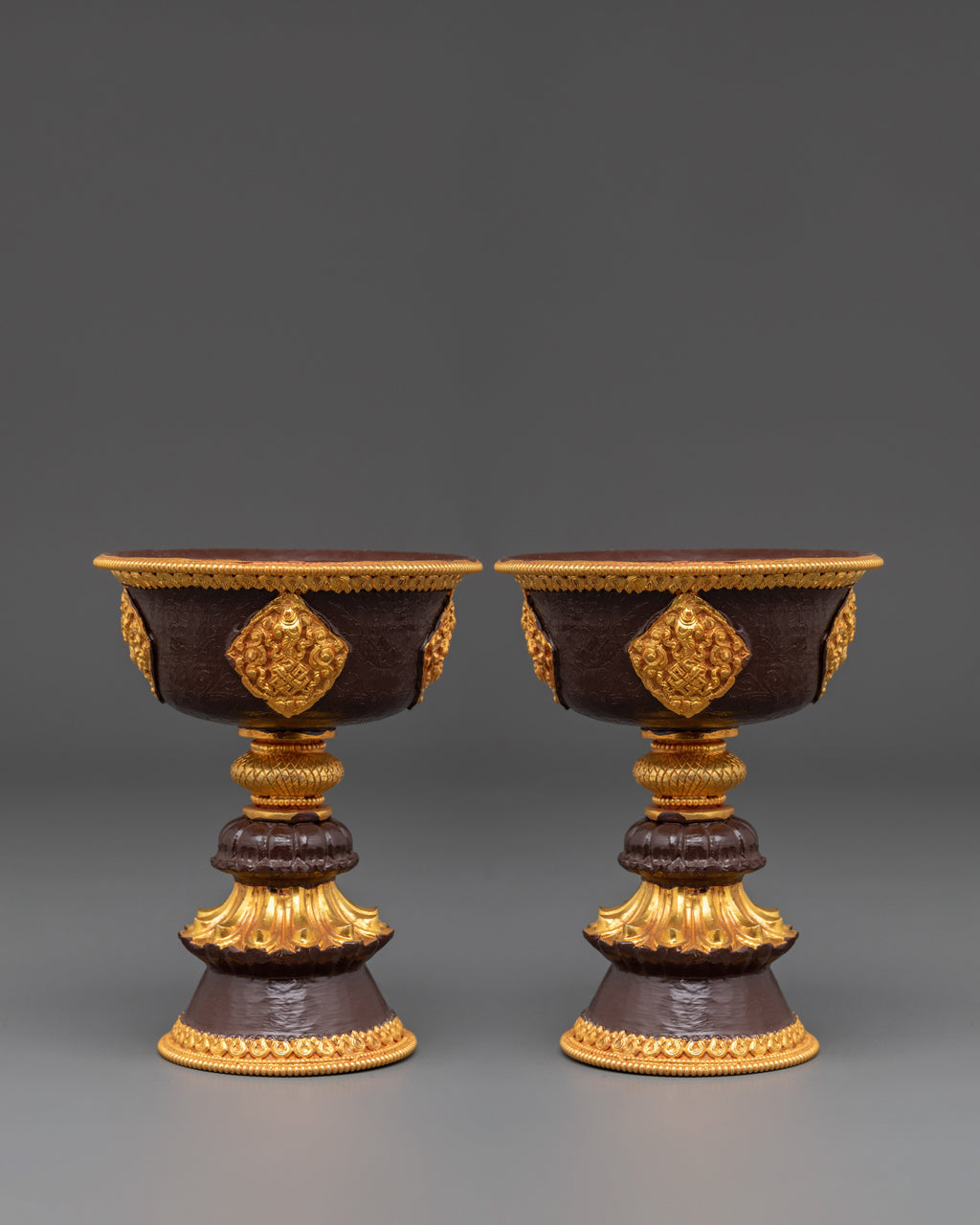 Buddhist Ritual Copper Butter Lamp Set | Prayer Altar Decor