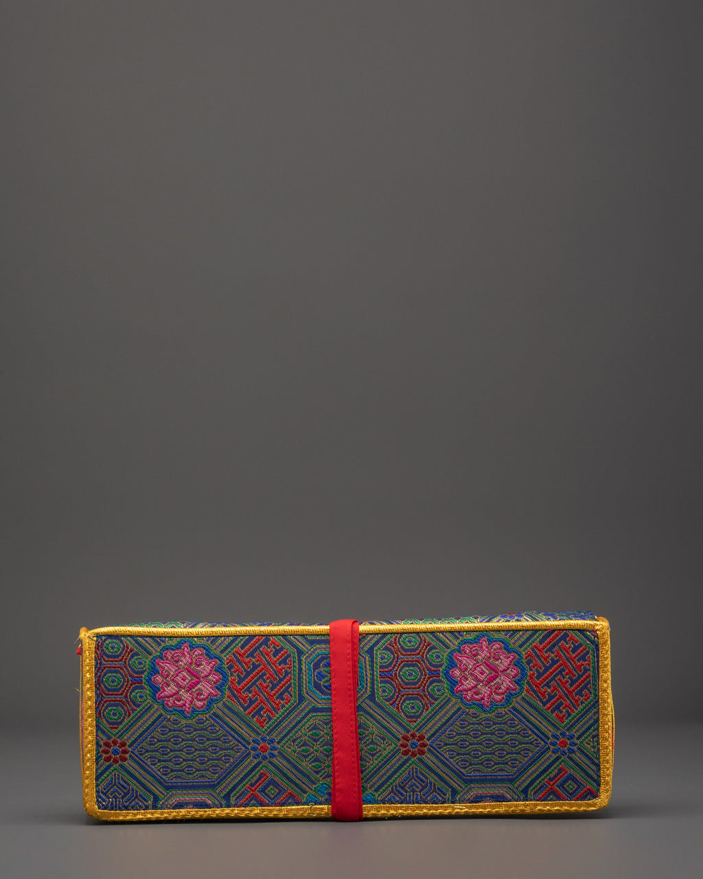 This Buddhist Scripture Book Cover is designed to preserve and honor sacred writings, sutras, and Dharma scriptures beautifully and reverently. Made of beautiful silk cloth, it symbolizes the traditional Tibetan practice of wrapping scriptures to demonstrate deep respect for the Buddha's teachings. Its vivid fabric designs represent harmony, auspicious symbols, and spiritual blessings, making it an appropriate complement to any altar or meditation place.