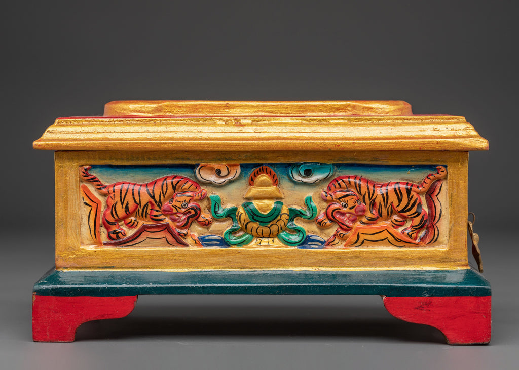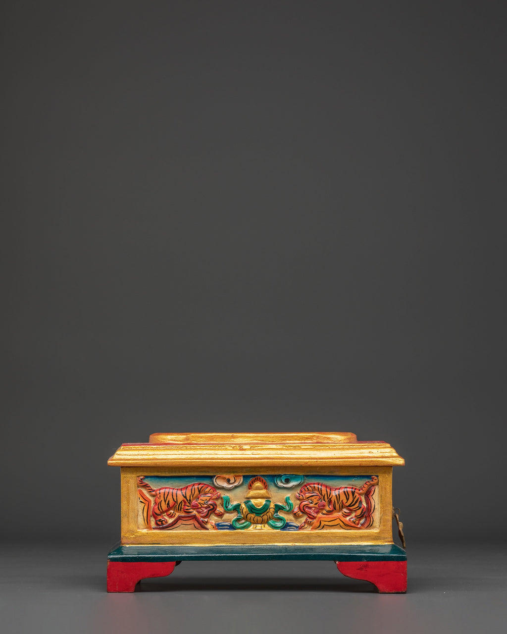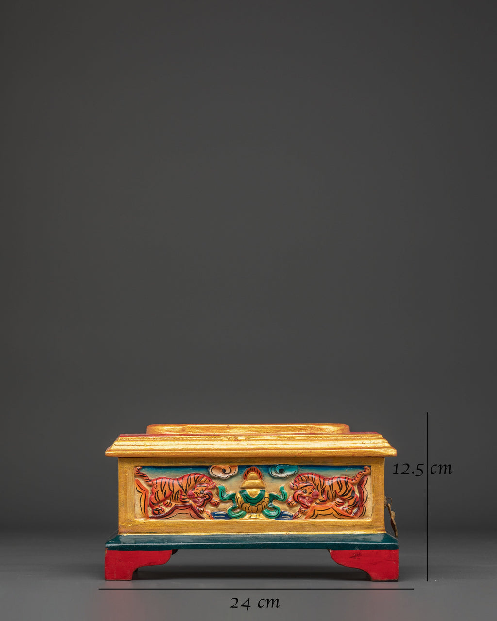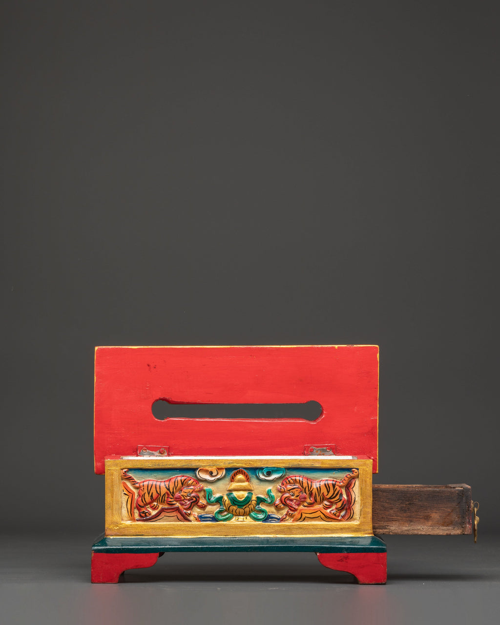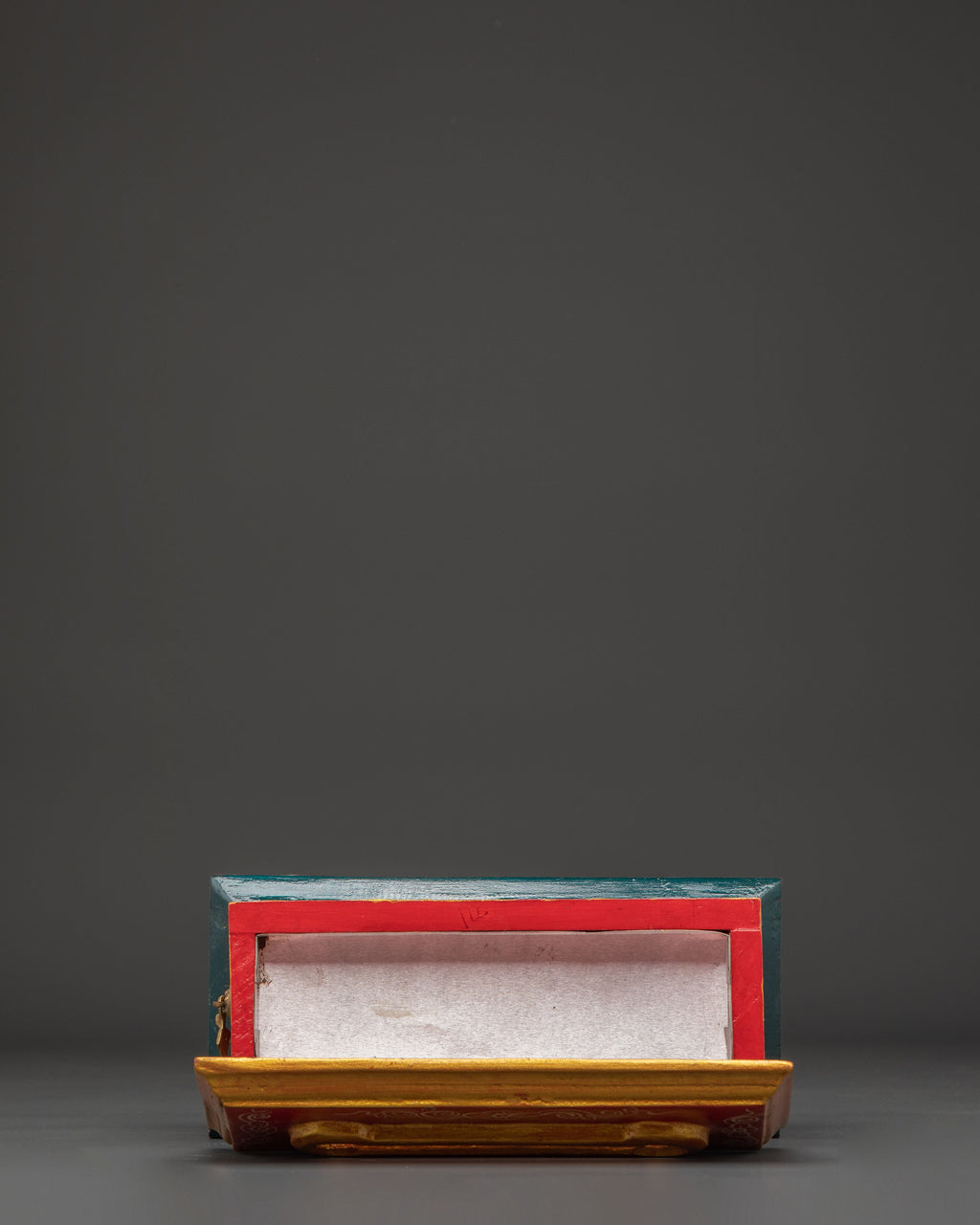 This incense burner's beautiful artwork represents Buddhist teachings and sacred symbolism, with themes often representing purity, harmony, and enlightenment. Each hand-painted design adds color to the incense box, elevating it from a mere ornament to a profound spiritual incense holder. This Tibetan design combines history and meditation, providing not only a container for incense sticks but also a spiritual companion to improve prayer rituals and personal practice.