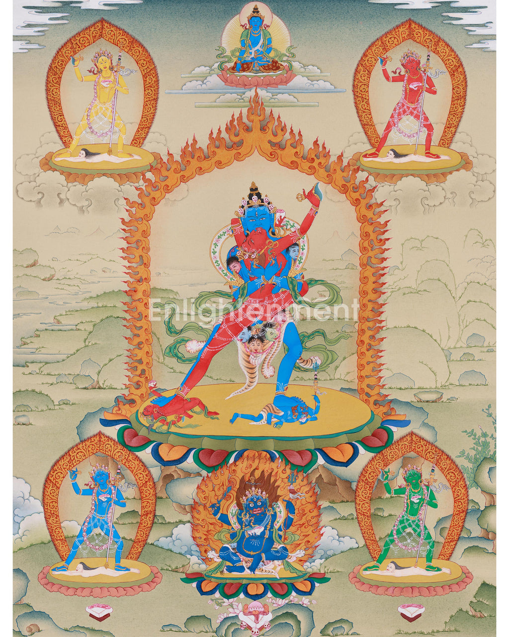 Experience the transformative energy of Chakrasamvara—order this stunning thangka today and invite wisdom, protection, and empowerment into your spiritual journey.