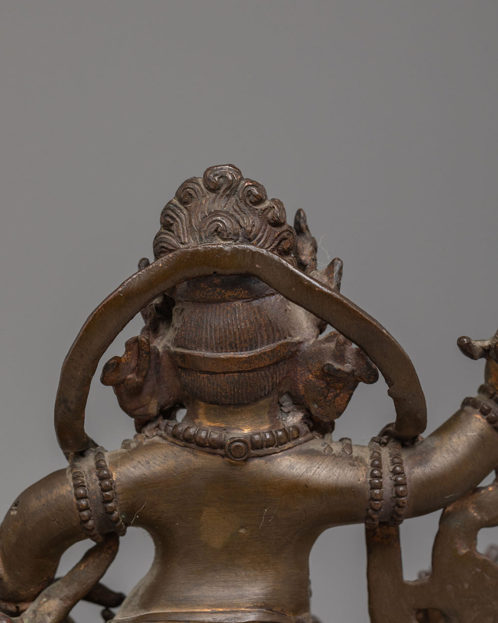This White Dzambhala statue measures 17.5cm in height and 15cm in width, weighing 1.51 kg. Crafted from an oxidized copper body, it showcases skilled Nepali workmanship with a refined, traditional finish. Suitable for personal altars, meditation spaces, or as a meaningful display piece, it brings a calming and purposeful presence to any setting.