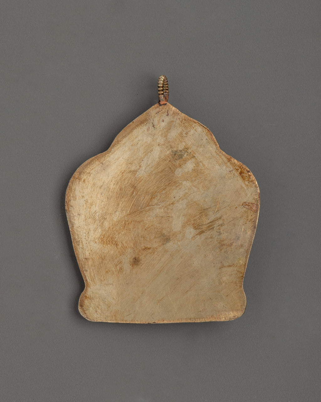 This Handcrafted Chenresig Wall Hanging is a beautiful depiction of Avalokiteshvara, the Buddhist deity of compassion. This craft, measuring 12 cm tall and 9.5 cm broad, is composed of white metal, ensuring a beautiful finish. The Chenresig tranquil face complements any environment dedicated to spiritual growth, meditation, or Buddhist practice. It is a work of beauty and a reminder to be compassionate, kind, and loving in all parts of life.