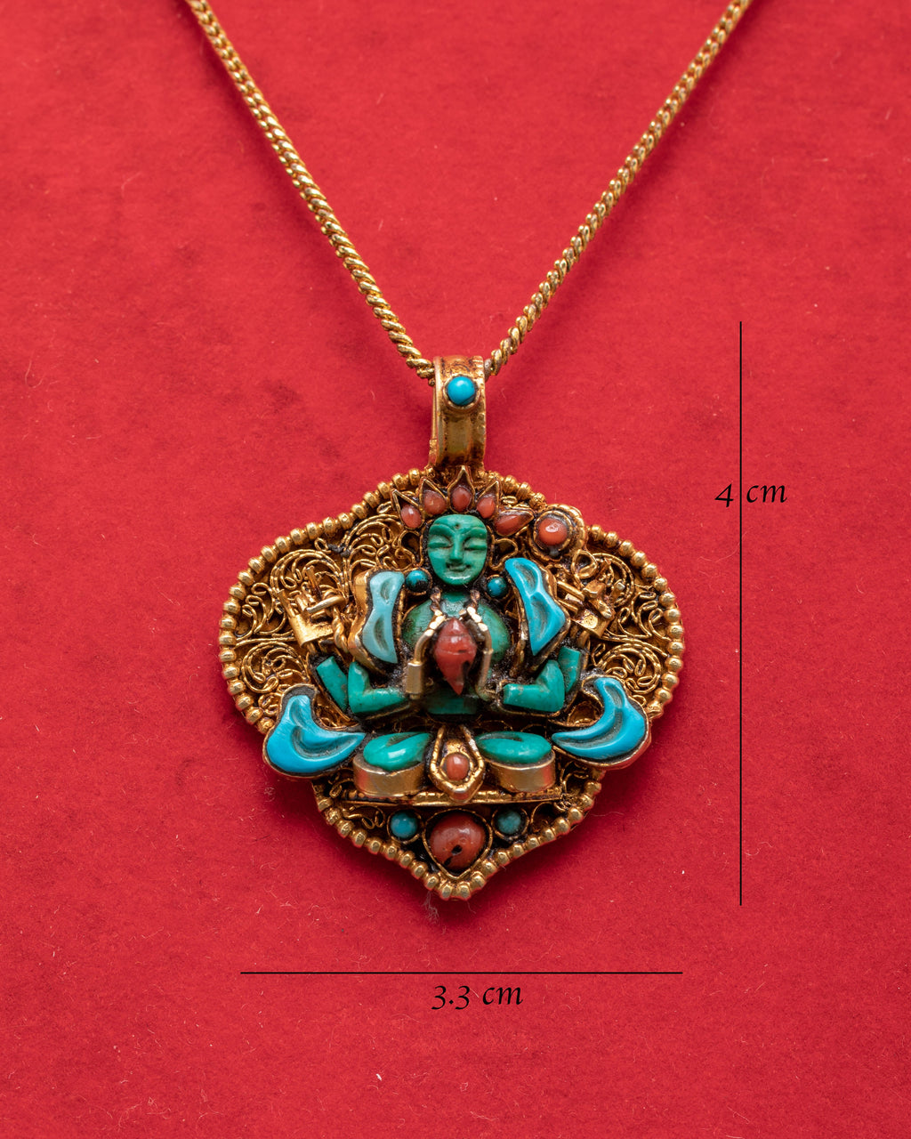 The turquoise stone promotes healing and spiritual growth, while the coral stone brings vitality and positive energy. Together, these stones enhance the compassion and blessings of Chenrezig, making this locket a perfect accessory for daily wear, meditation, or as a reminder of divine mercy. Whether as a personal talisman or a thoughtful gift, this locket brings a sense of peace and spiritual connection.
