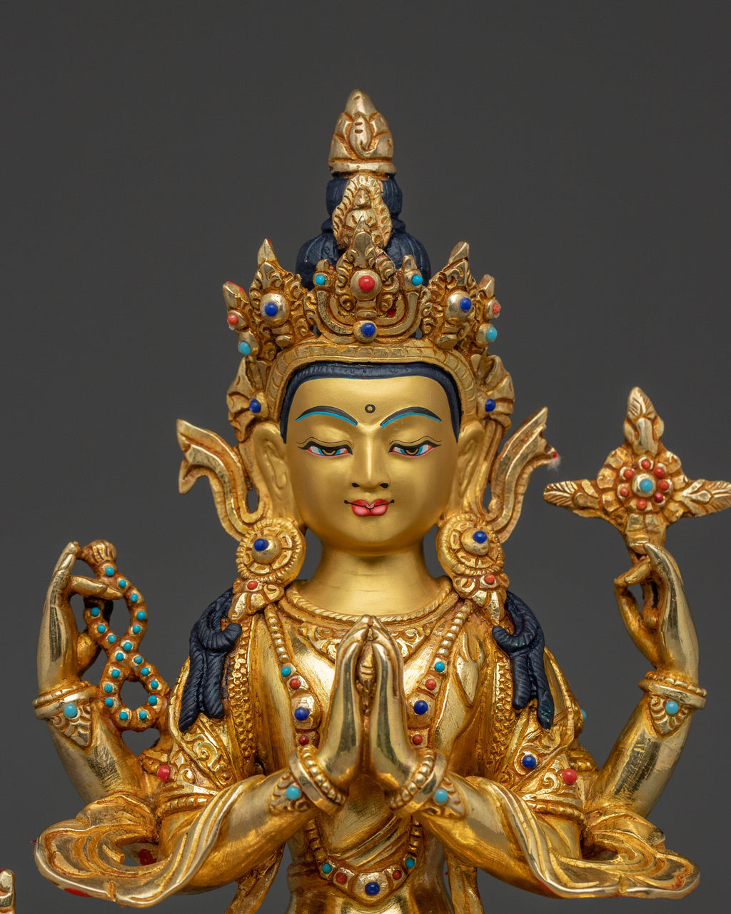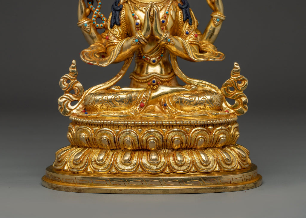 Handmade Chenrezig Spiritual Statue | Golden 24K Gold Gilded Sculpture