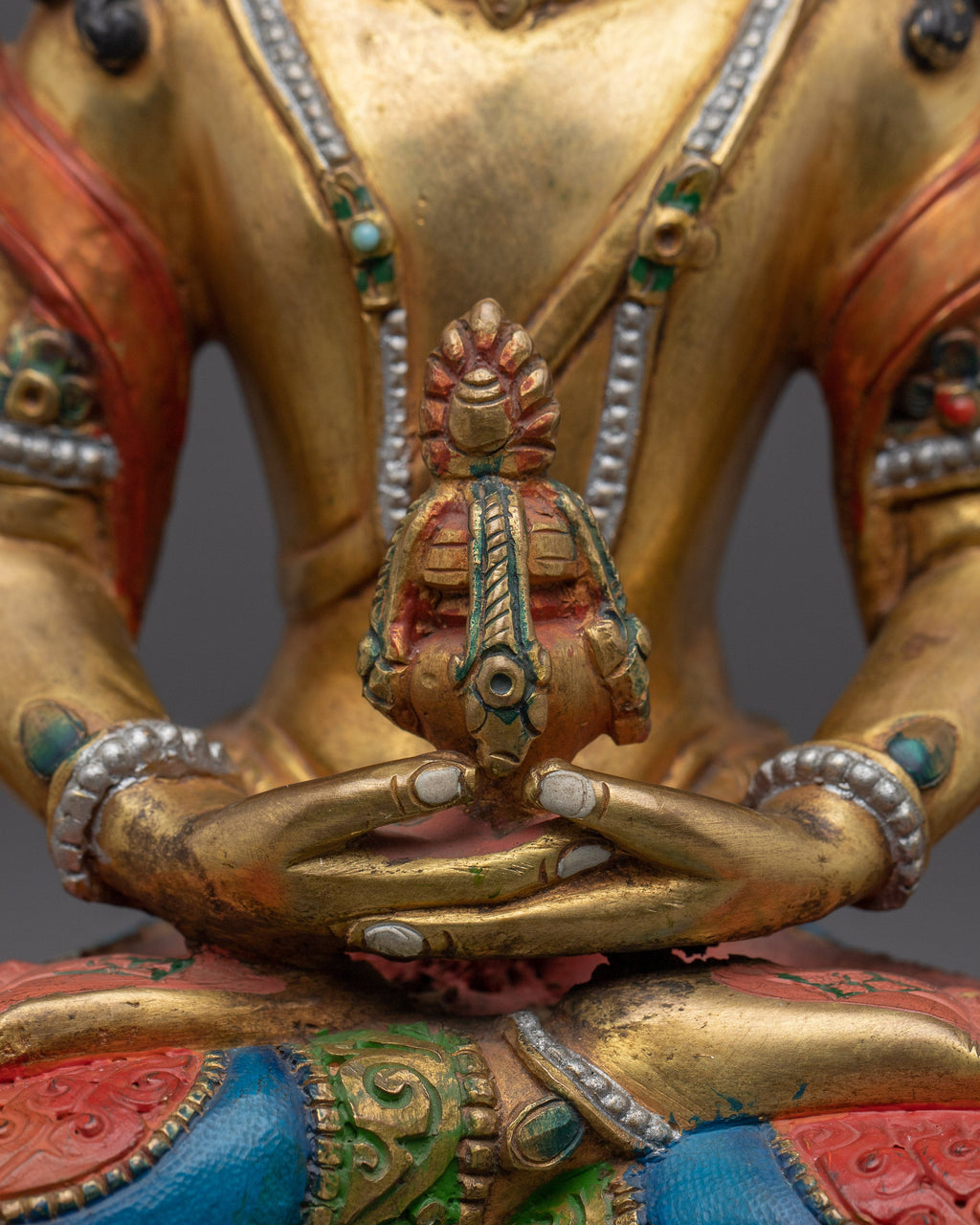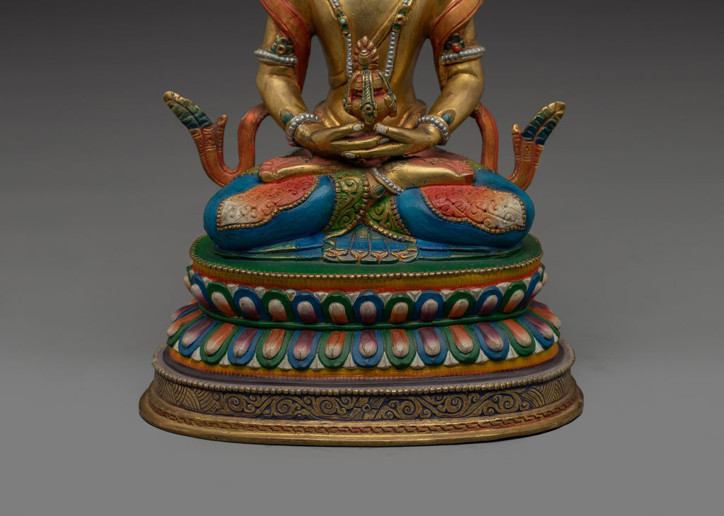 Handmade Colorful Amitayus Copper Statue | Longevity, Altar, and Meditation Decor
