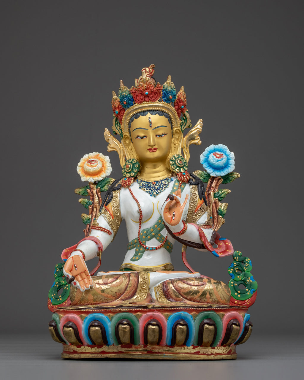 Buddhist Colorful White Tara Statue | Spiritual Decor Artwork